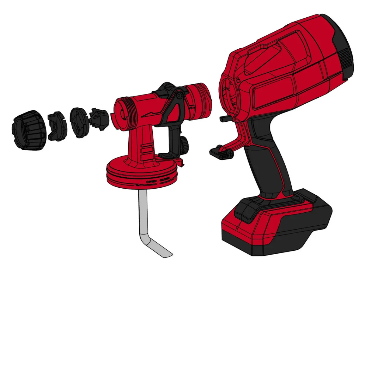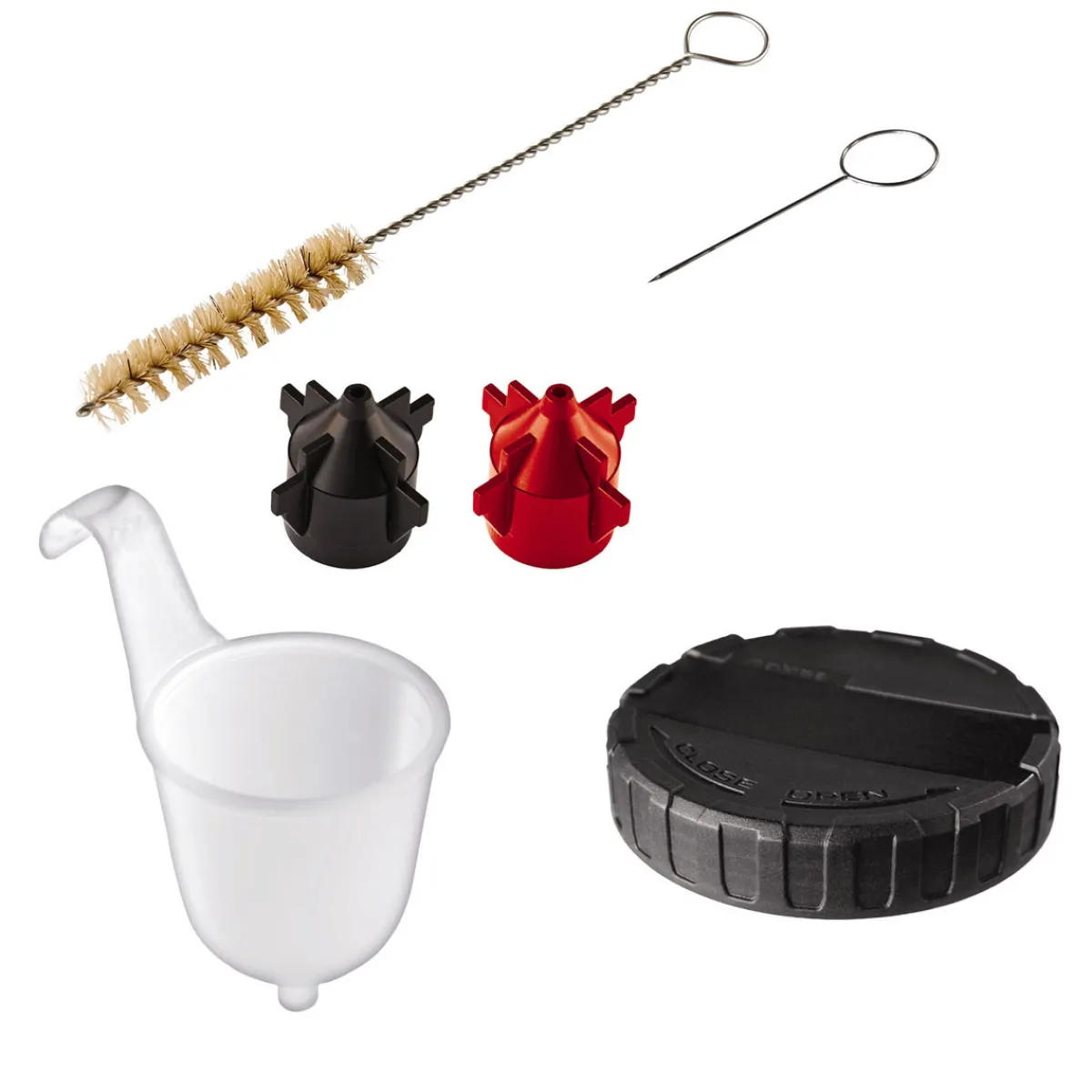 - Lieferumfang: 2 Düsen für unterschiedliche Lack- und Lasurviskositäten, Reinigungsbürste zum Reinigen des Steigrohrs, Reinigungsnadel zum Säubern der Sprühdüse,100 ml Behälter zur Viskositätsprüfung, Deckel für Farbbehälter,800 ml Farbbehälter mit Messskala