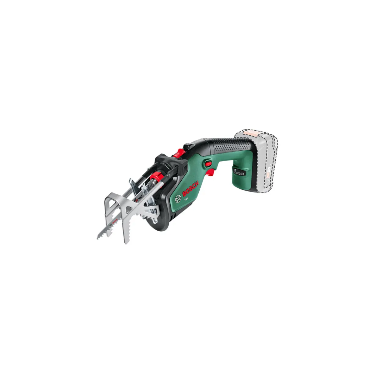 Mit der Bosch Akku-Gartensäge Keo wird das Schneiden von Ästen und Sträuchern zum Kinderspiel. Dank des leichten Gewichts und des ergonomischen Designs liegt die Säge gut in der Hand und ermöglicht ein präzises Arbeiten. Das Bosch-SDS Schnellwechselsystem erleichtert den Wechsel des Sägeblattes, während die ECP-Funktion für eine längere Lebensdauer des Akkus sorgt.