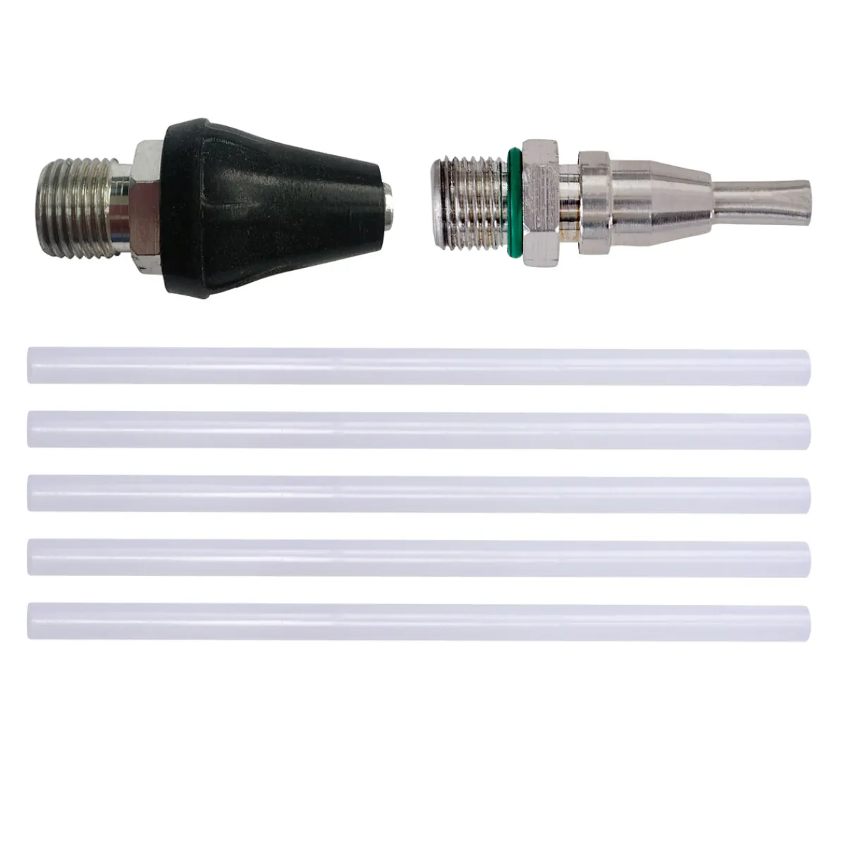 - Ausstattung: Softgrip-Besatz, Ergonomischer Griff, Wechselbare Düsen, Kabellos, Länge Klebepatronen: 200 mm