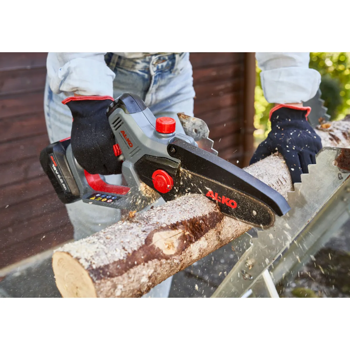 Die AL-KO Akku-Kettensäge eignet sich ideal für alle Kunden, die eine leichte und handliche Kettensäge suchen, die dennoch kraftvoll genug für das Entasten von Bäumen und das Schneiden von Ästen ist. Durch den emissionsarmen Li-Ionen-Akku ist sie zudem umweltfreundlich.