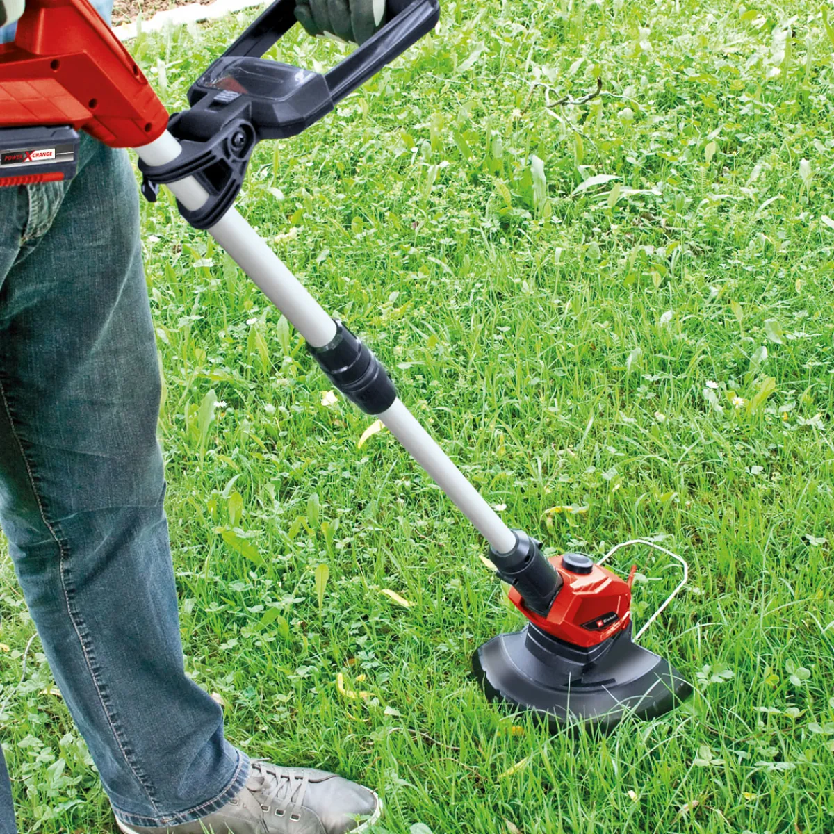 Der Akku-Rasentrimmer GE-CT 18 Li (1x 2,5 Ah) ist ein leistungsstarkes Gerät, das überall dort für einen gepflegten Rasen sorgt, wo der Rasenmäher nicht hinkommt. Als Mitglied der Einhell Power X-Change Familie kann der Trimmer kabellos flexibel für ausgedehnte, stromnetzunabhängige Arbeitseinsätze verwendet werden. Geliefert wird der Rasentrimmer im Kit mit einem 2,5 Ah Power X-Change Akku und einem Ladegerät. Dank Softgrip, stufenlos verstellbarem, zweitem Handgriff mit integriertem Messerfach und dem +/- 90° drehbaren sowie 5-fach neigbaren Motorkopf lassen sich auch schwierige Stellen wie senkrechte Flächen und Rasenkanten mühelos bearbeiten. Mitgeliefert werden 20 Kunststoffmesser.
