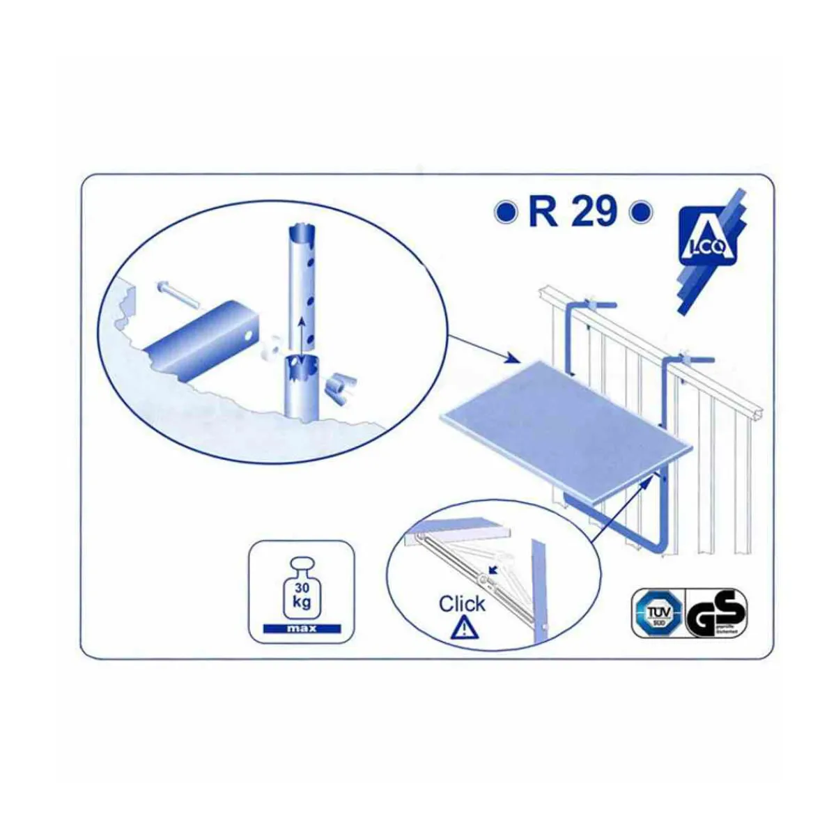 - Mit Klick-Arretierung ausgestattet für sicheren Halt an Geländern oder Brüstungen bis zu 16 cm Breite.