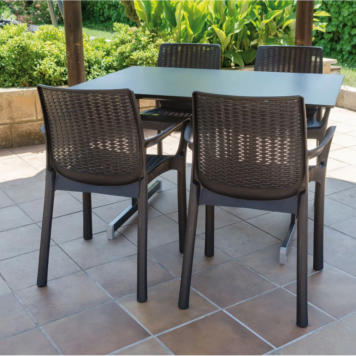 - Elegante eckige Form mit klaren Linien, perfekt abgestimmt auf moderne Outdoor-Bereiche