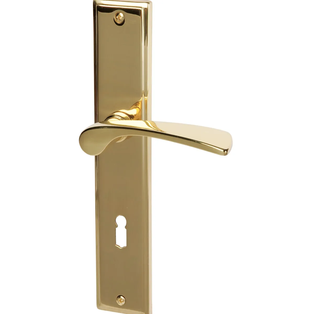 Wenn Sie auf der Suche nach einem hochwertigen Türbeschlag sind, der Ihre Zimmertür optisch aufwertet, dann ist die Alpertec Langschildgarnitur Nelson-LS poliert 72 mm genau das Richtige. Mit ihrem modernen Design aus Messing in goldfarbenem Kupfer-Look und ihrer robusten Verarbeitung bietet sie nicht nur eine ansprechende Optik, sondern auch eine hohe Langlebigkeit. Bestellen Sie jetzt bei Online und verleihen Sie Ihrer Tür den letzten Schliff!