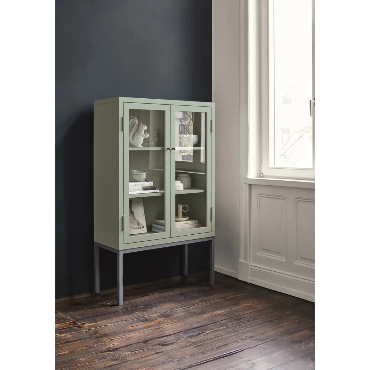 - Edelmatter Glanz für stilvolle Innenraumgestaltung mit einer sanften graugrünen Farbe namens Sanfter Morgentau