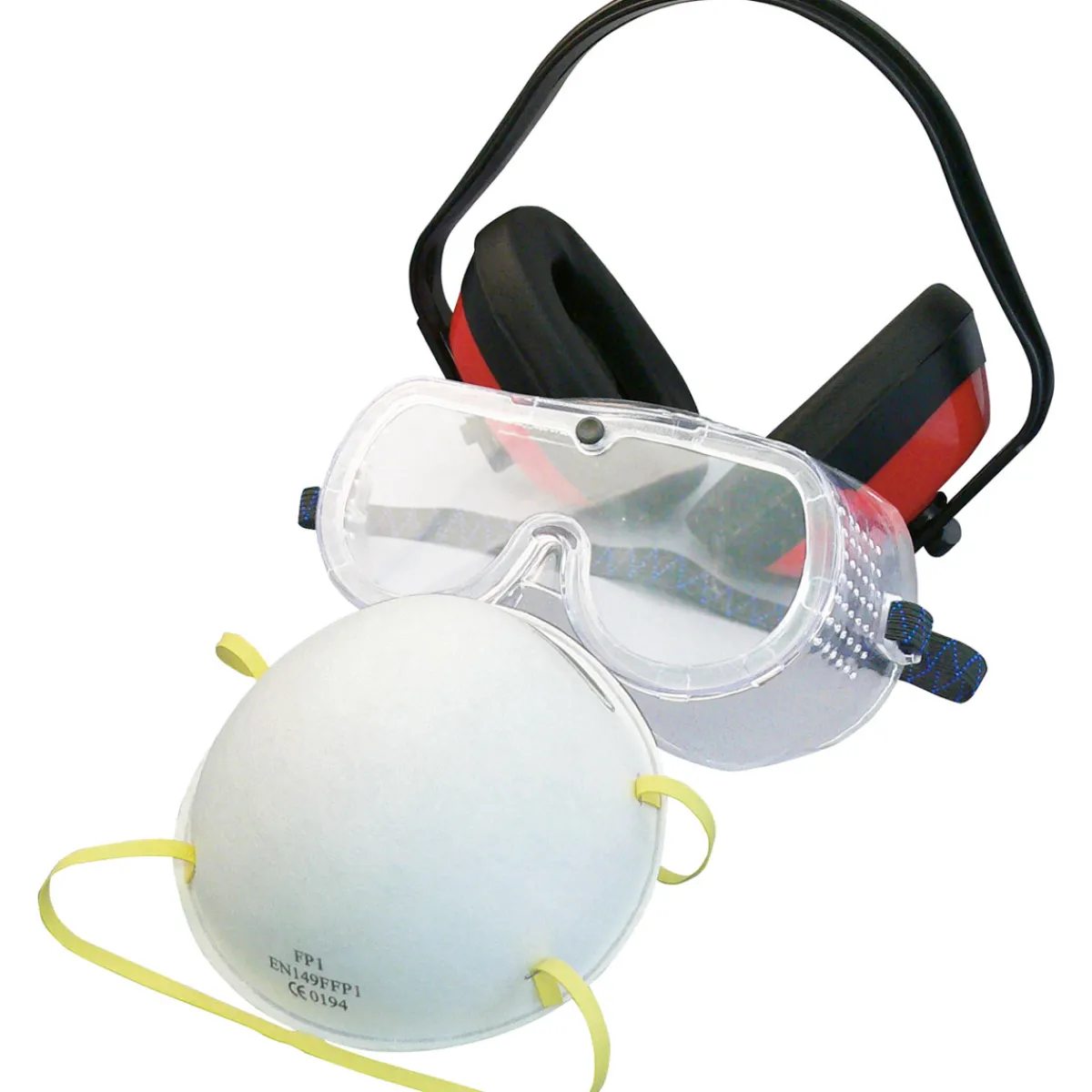 Triuso Arbeitsschutz-Set 3-teilig: Maske, Gehörschutz und Schutzbrille