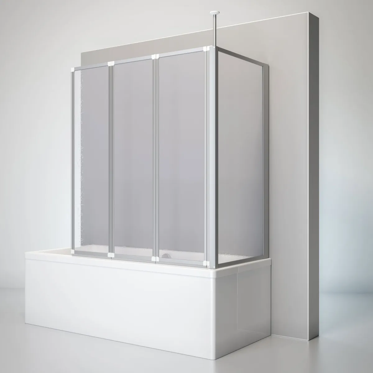 Badewannenfaltwand 3-teilig 1288 x 1400 mm mit Seitenwand und Deckenstütze^Schulte