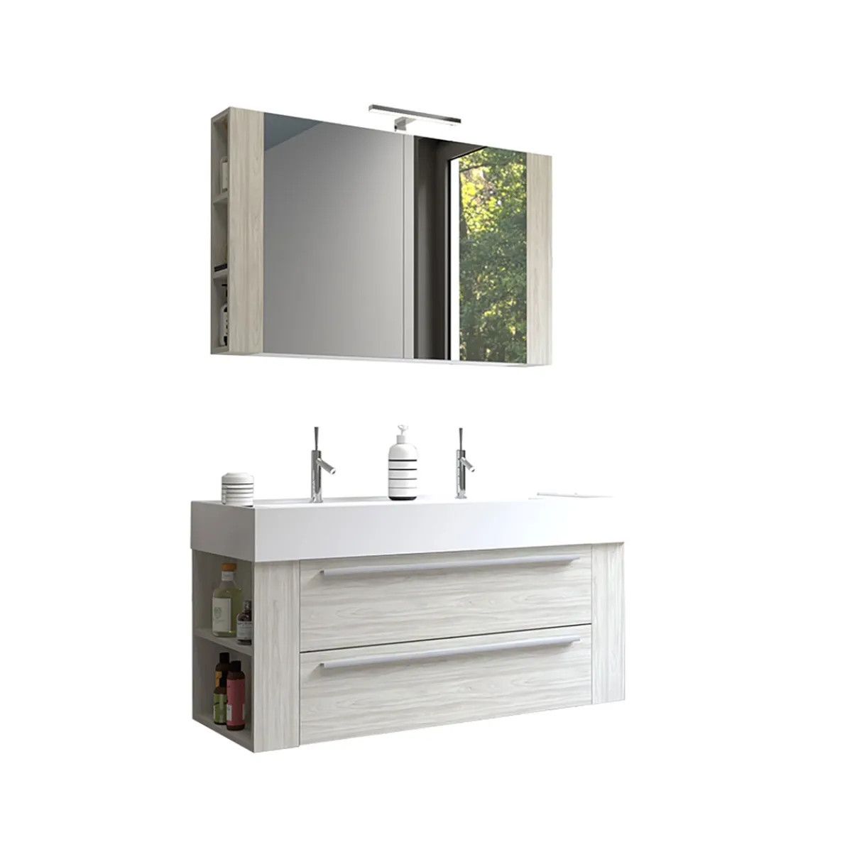 Progetto Idea Stella Badmöbel DOMUS 120 Ulme creme mit Spiegelschrank und Lampe