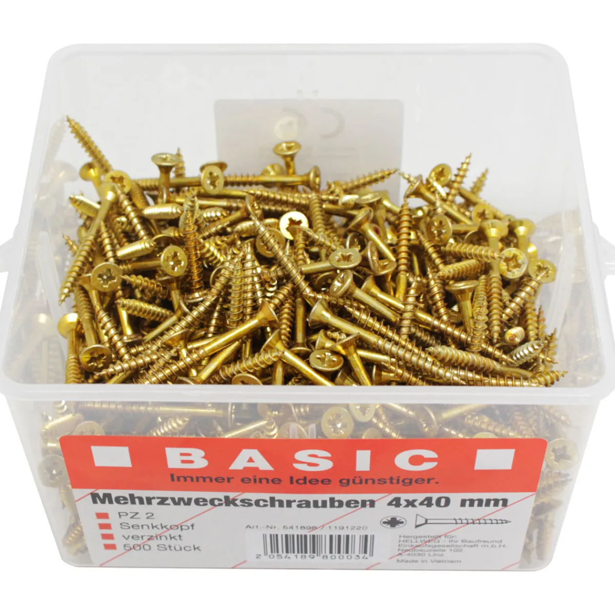 Basic Mehrzweck-Schrauben-Eimer 4,0 x 40 mm 500 Stück im Eimer