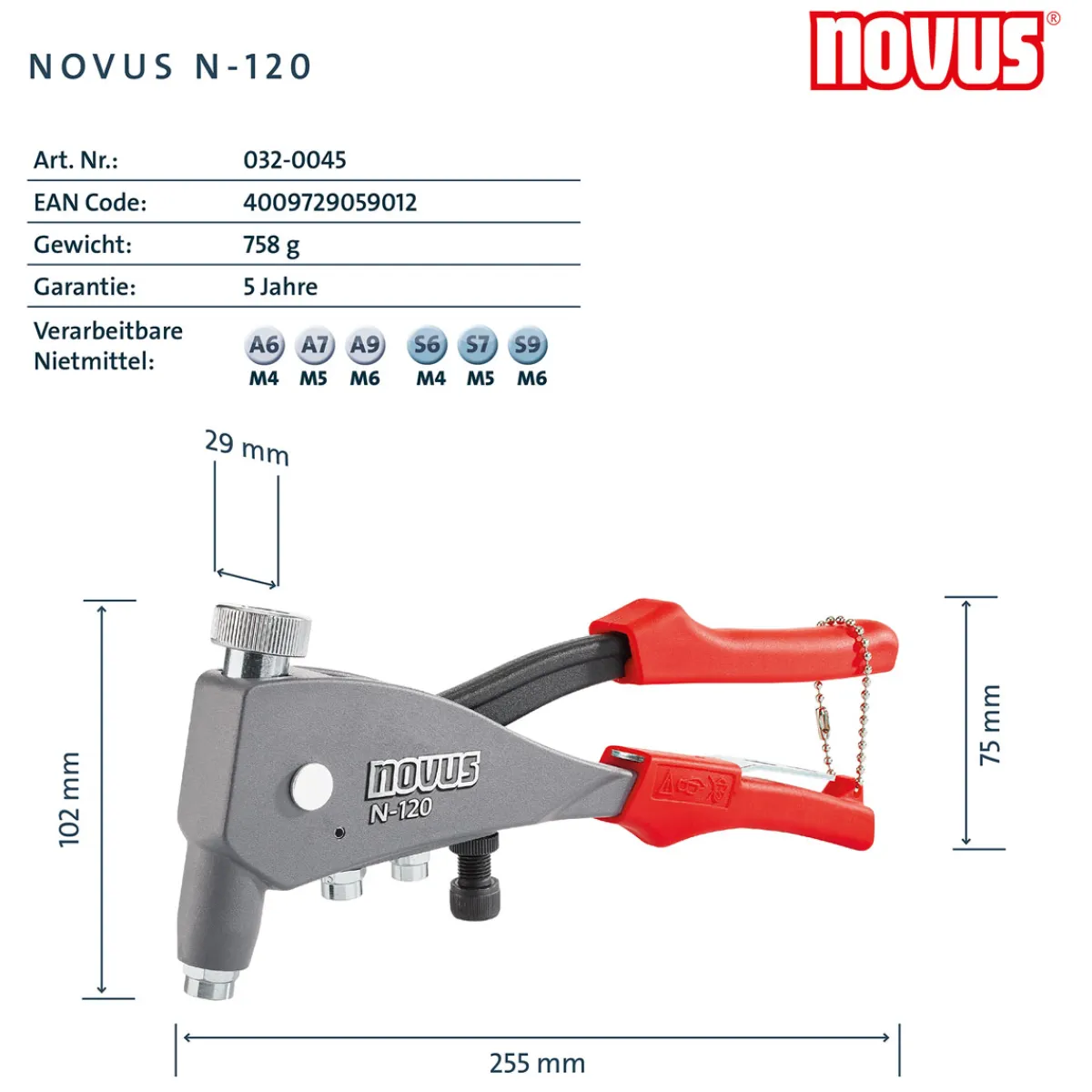 Produktdetails der Novus Blindnietmutterzange N-120