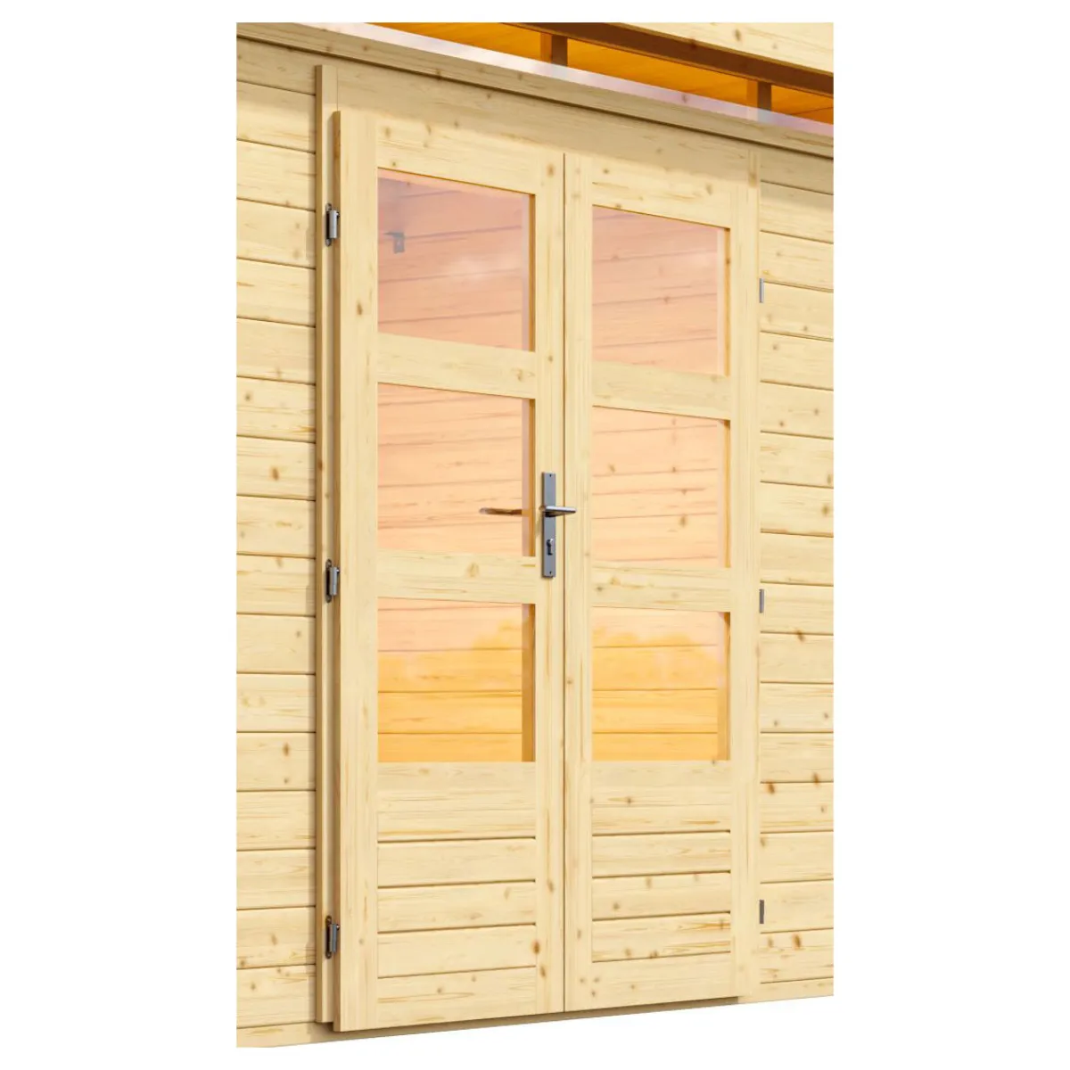 Blockbohlenhaus Kastorf 6 naturbelassen mit Anbaudach^Karibu New