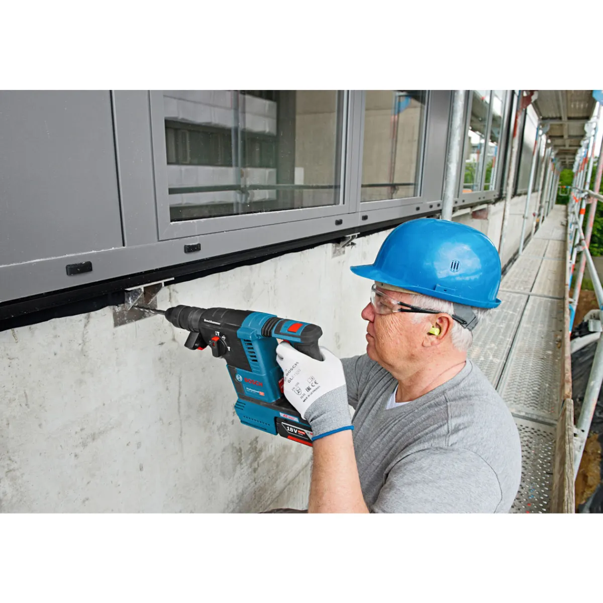 Der Bosch Professional Akku Bohrhammer GBH 18V -26F bietet Ihnen Flexibilität beim Arbeiten durch seine kabellose Freiheit sowie eine hohe Leistungsfähigkeit dank seiner hohen Schlagzahl von bis zu 4.350 /min und seiner maximalen Einzelschlagenergie von 2,6 J . Die integrierte Arbeitsleuchte sorgt zudem dafür dass Sie auch bei schlechten Lichtverhältnissen immer alles im Blick haben.