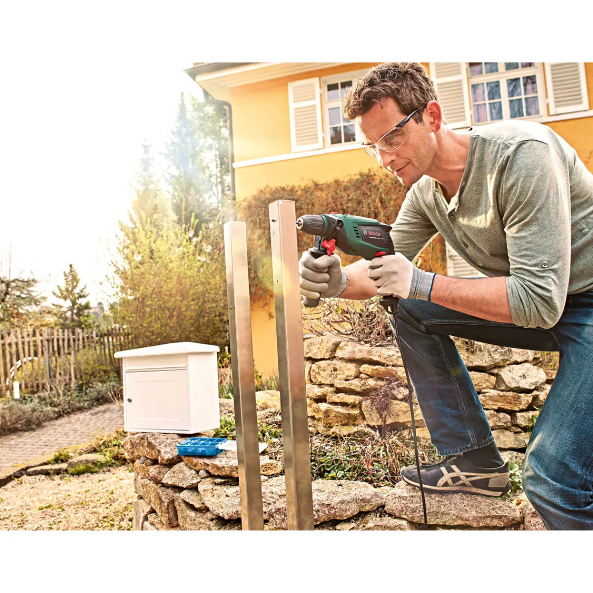 Die Bosch Schlagbohrmaschine UniversalImpact 700 ist der perfekte Helfer für alle, die im Innen- und Außenbereich bauen oder renovieren möchten. Mit einer Leistung von 700 W und einer max. Leerlaufdrehzahl von 3000 U/min ist sie ein kraftvolles Werkzeug, das auch in harten Materialien wie Beton oder Stahl mühelos bohrt.