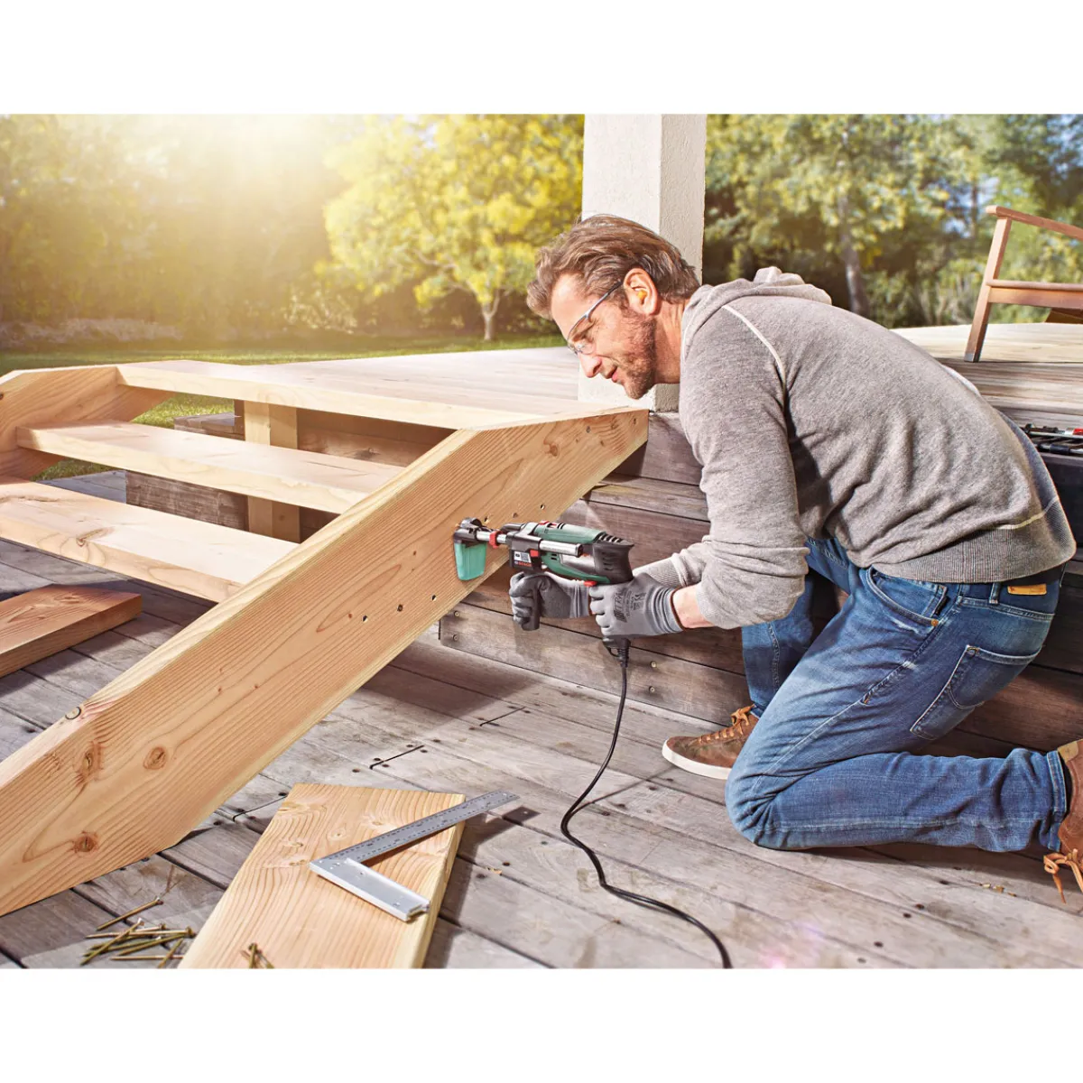 Die Bosch Schlagbohrmaschine UniversalImpact 700 eignet sich ideal für Heimwerker und Profis, die im Innen- und Außenbereich bauen oder renovieren möchten. Dank ihrer kraftvollen Leistung können auch harte Materialien problemlos bearbeitet werden.