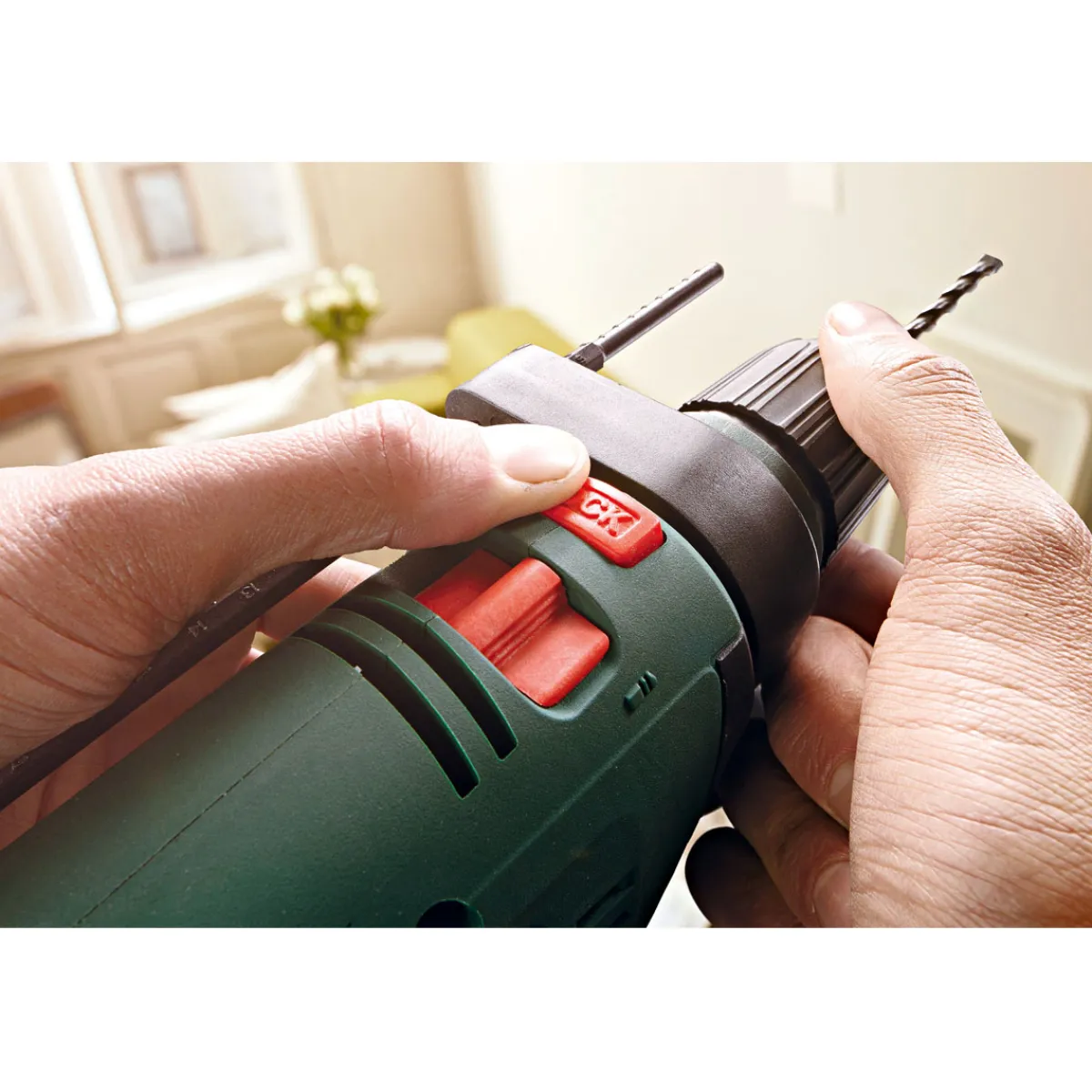 Wer eine leistungsstarke Schlagbohrmaschine sucht, die auch in harten Materialien wie Beton oder Stahl mühelos bohrt, sollte zur Bosch UniversalImpact 700 greifen. Mit ihrem geringen Gewicht von nur 1,7 kg ist sie zudem sehr handlich und ermöglicht ein ermüdungsfreies Arbeiten. Der Lieferumfang mit Zusatzhandgriff, Tiefenanschlag und Kunststoffkoffer rundet das Angebot ab.