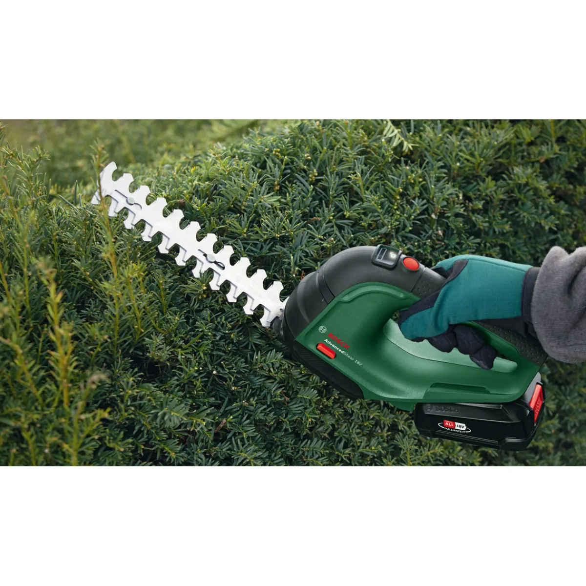 Das Bosch Strauchmesser AdvancedShear bietet eine hohe Flexibilität beim Schneiden von Sträuchern und Büschen dank seiner kabellosen Funktion und des leichten Gewichts. Die lange Akkulaufzeit ermöglicht ein effizientes Arbeiten ohne ständiges Aufladen des Geräts. Mit dem mitgelieferten Zubehör wie dem Multi-Click-Strauchscherenmesser oder der Aufbewahrungshülle wird das Paket abgerundet.