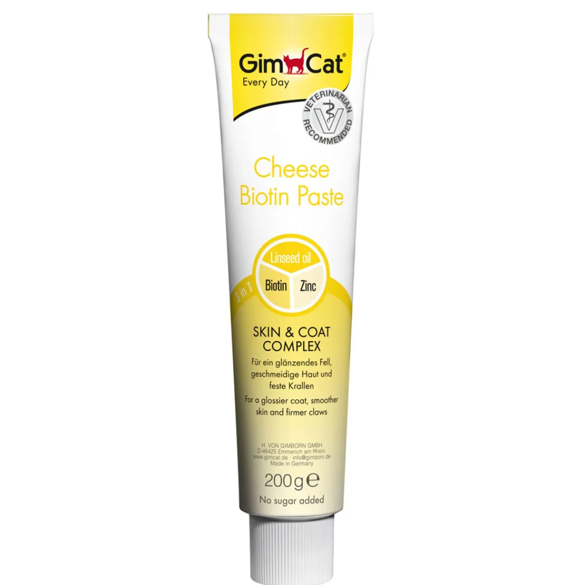 GimPet Cheese Paste (Käse Paste) ist eine gelungene Komposition aus edlem, hocharomatischemKäse undwertvollem Biotin! Biotin verleiht dem Haarkleid mehr Glanz, Geschmeidigkeit und Farbintensität. Eine gesunde Leckerei, der Ihre Katze nicht widerstehen kann ? am liebsten von Hand gefüttert, direkt aus der Tube. Ohne Zuckerzusatz. Ergänzungsfuttermittel für Katzen.