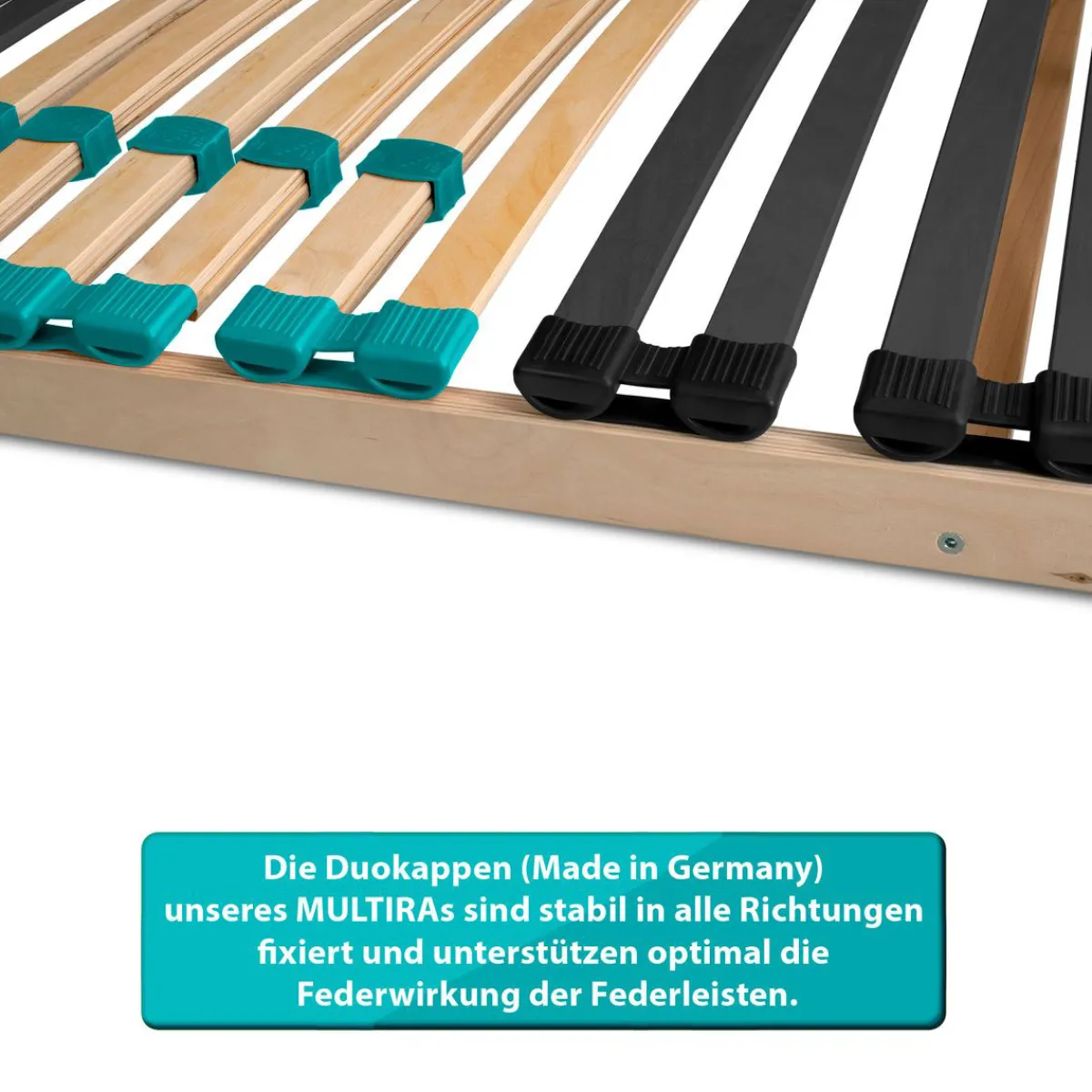 - Lagerung der Leisten in holmabdeckende Duo-Kappen, für Federungskomfort über die gesamte Rahmenbreite