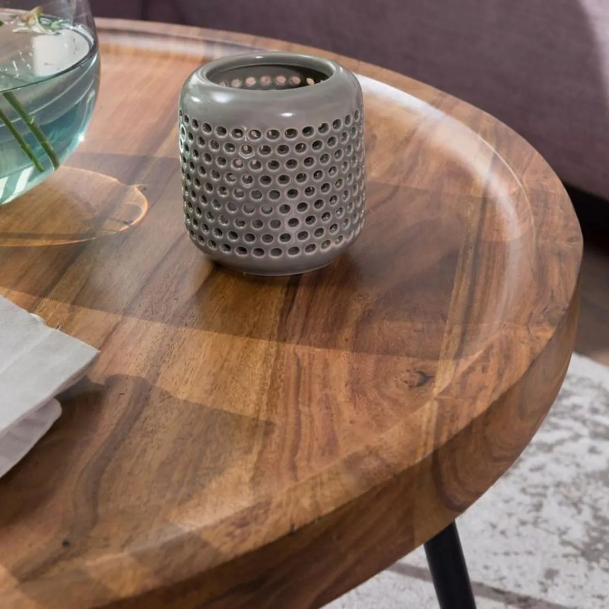 | Material: | Sheesham Massivholz, Schwarz lackiertes Eisen |