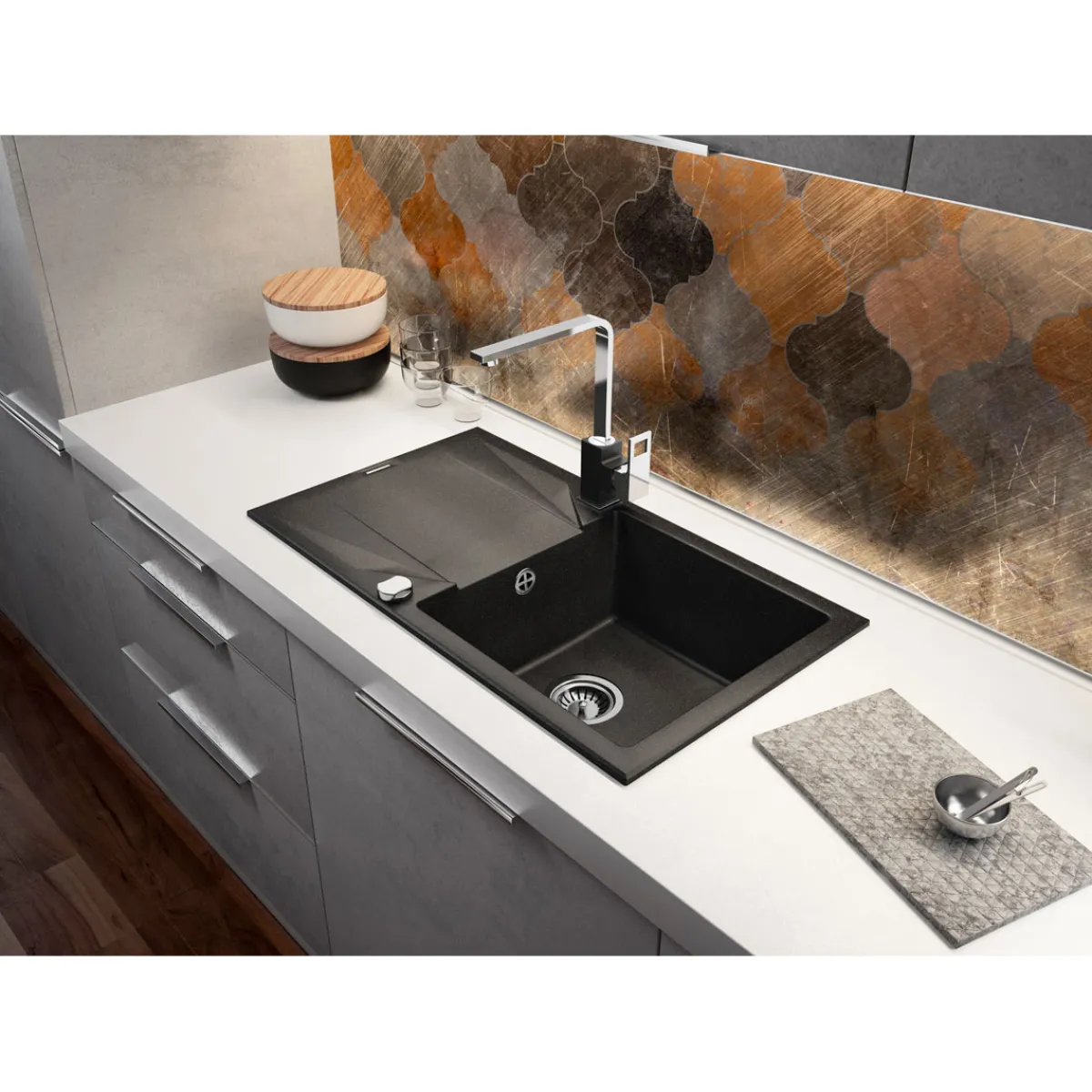 - Farbe: Der edle Graphite-Ton verleiht Ihrer Küche eine moderne und luxuriöse Atmosphäre.