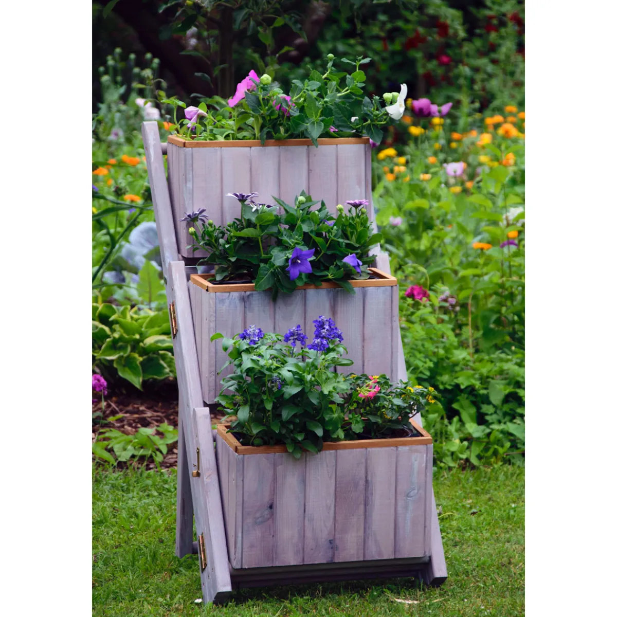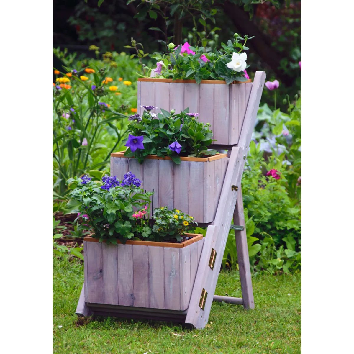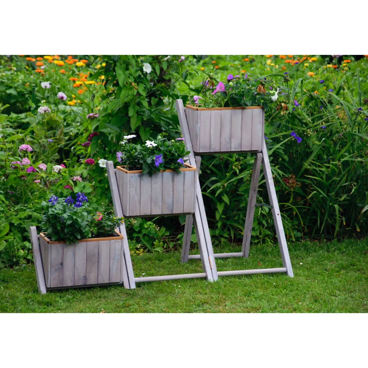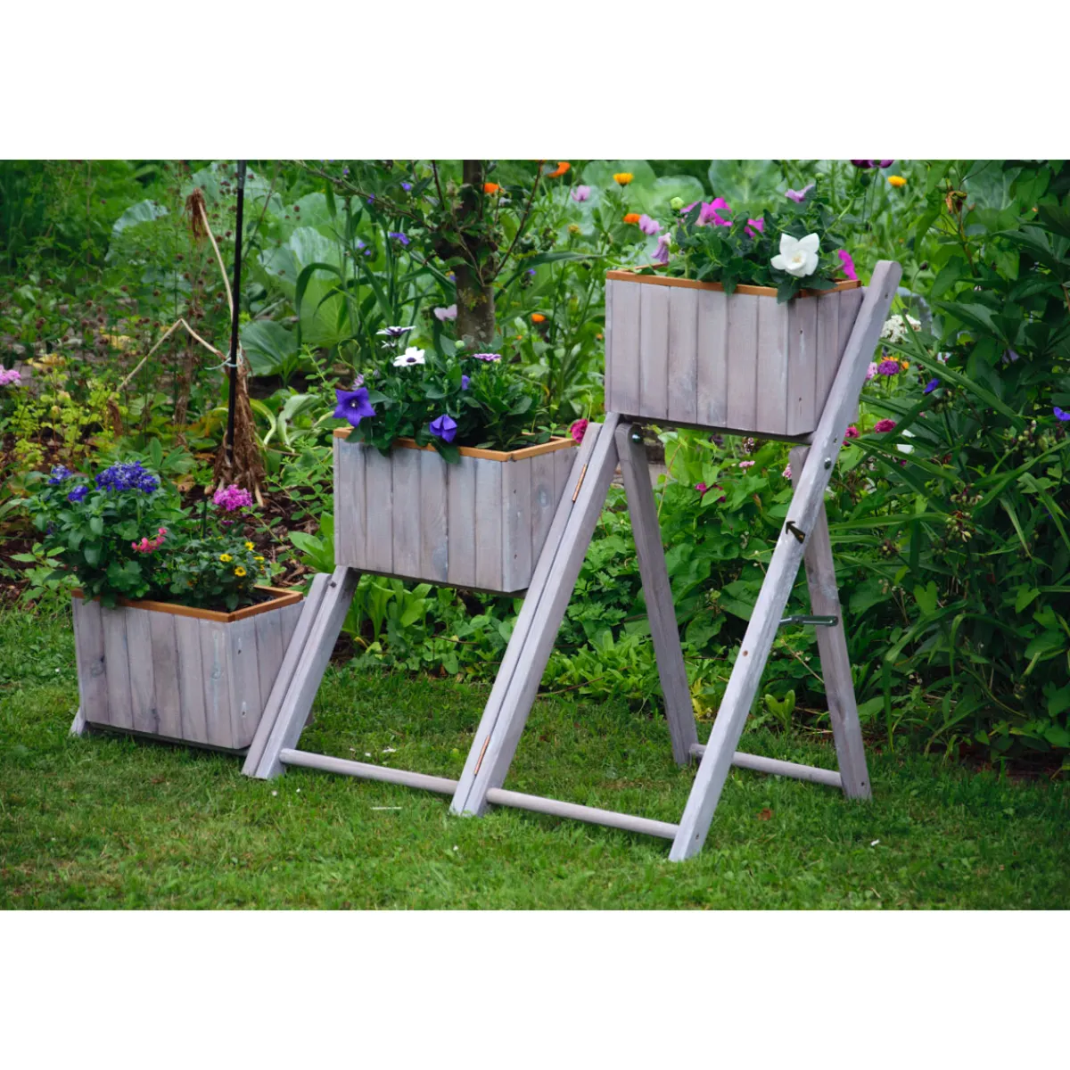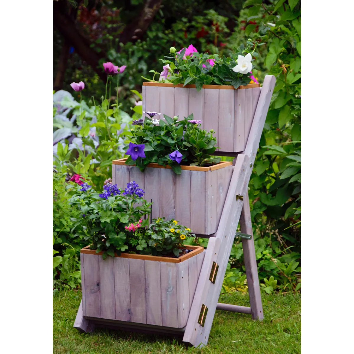 dobar Pflanztreppe ausklappbar 41 x 85 x 55 cm grau Kiefer für kreative Gartengestaltung