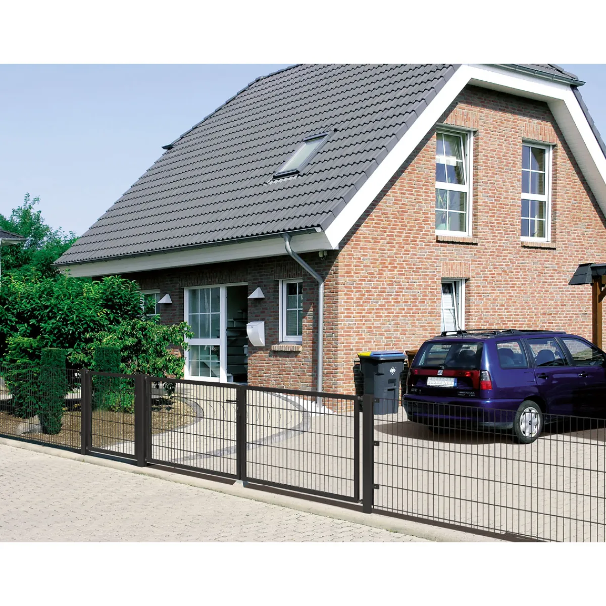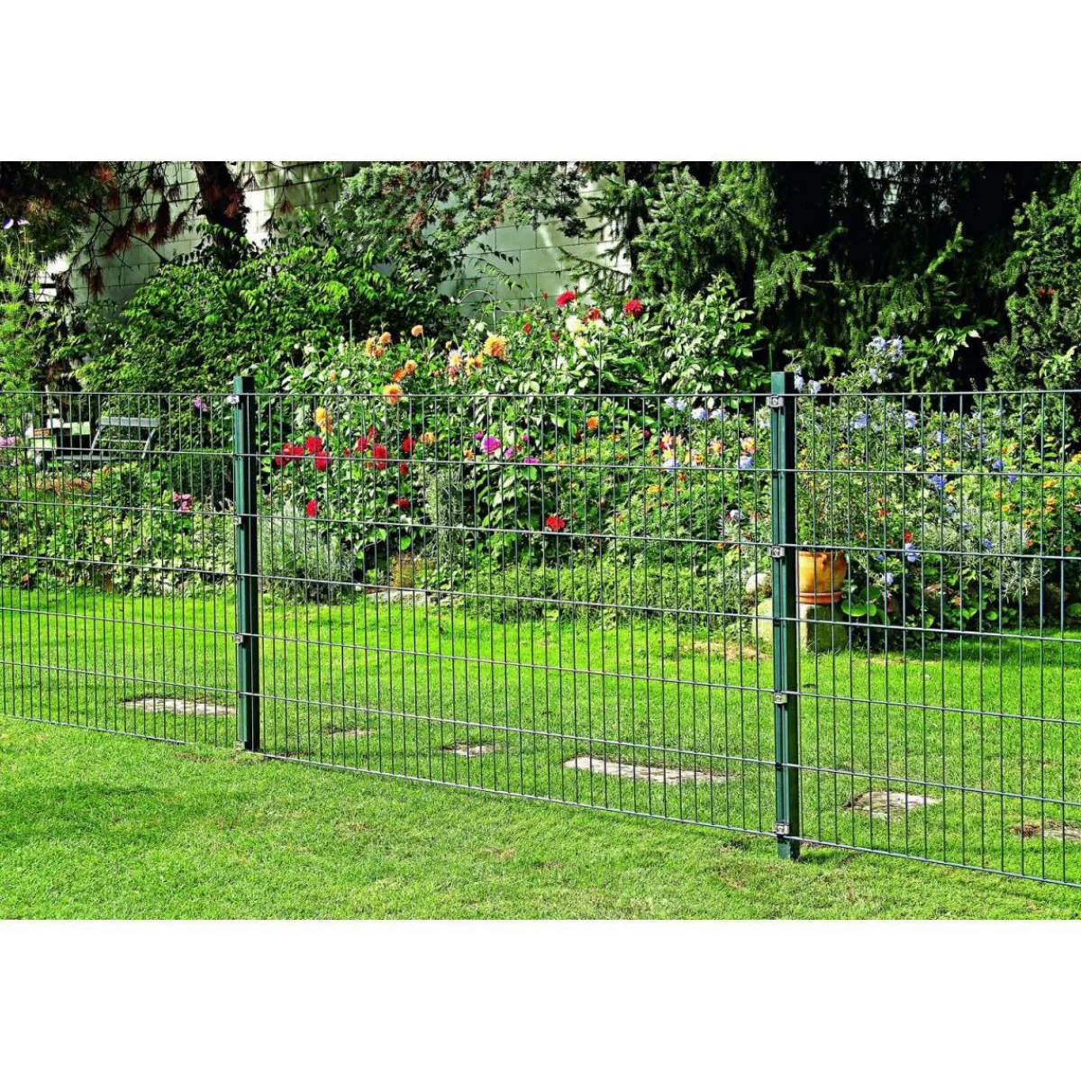 Sichern Sie Ihr Grundstück stilvoll und robust mit dem Doppelstab Gittermatte-Zaunsystem in Grün.