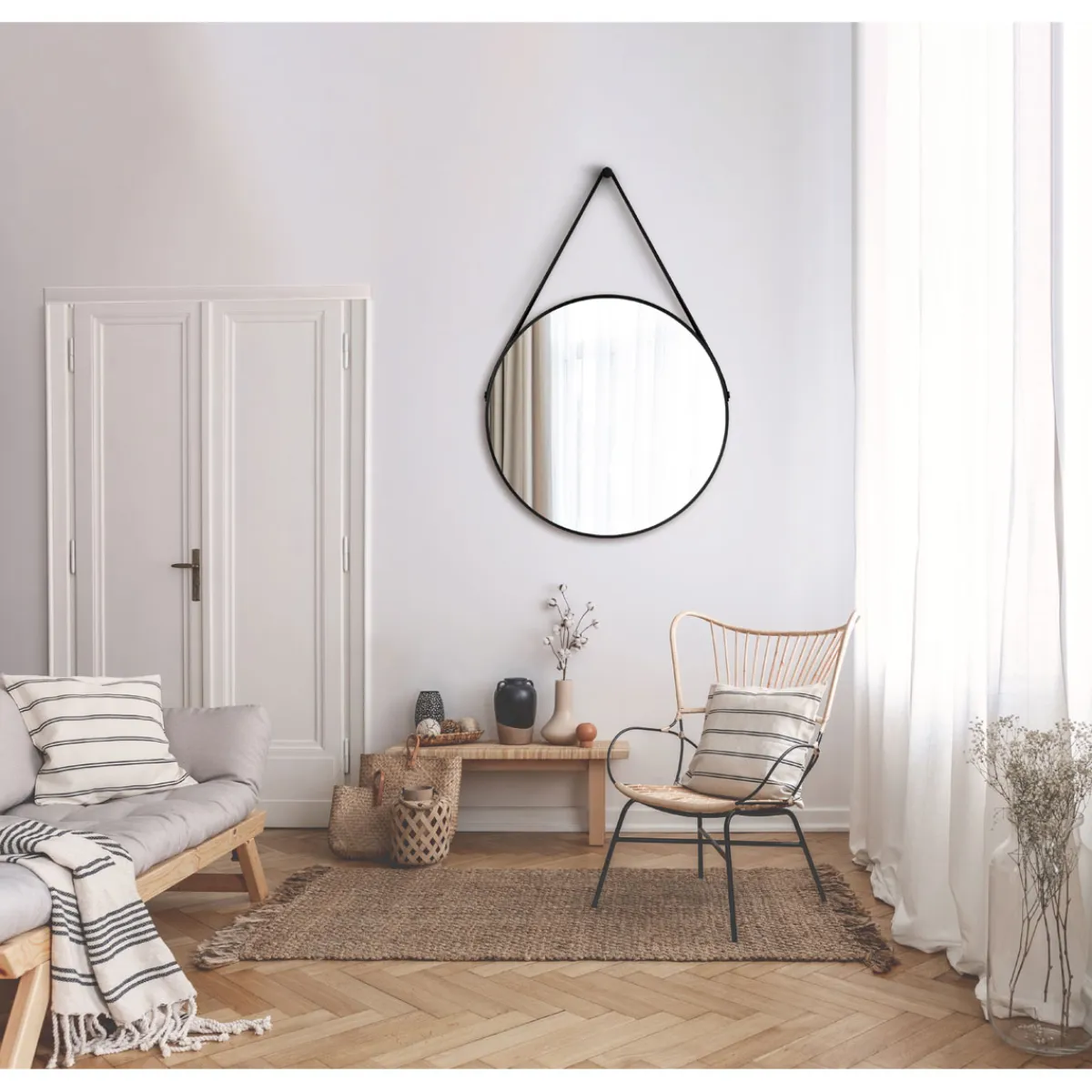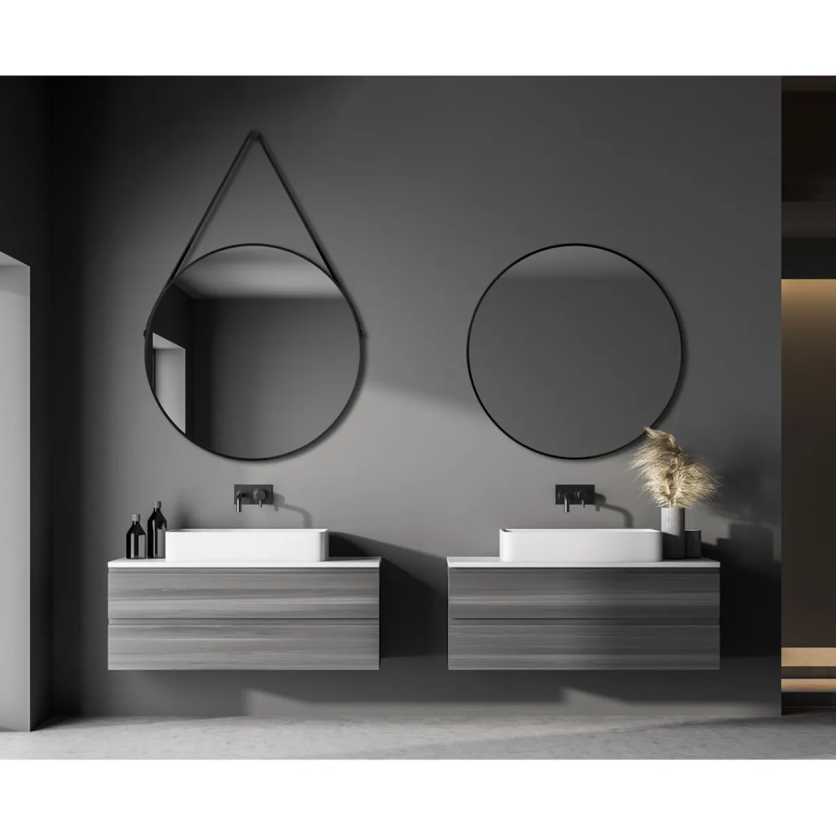 Verleihen Sie Ihrem Badezimmer mit dem exklusiven DSK Design Spiegel Silver Coiffeur Black Dm 80 cm das gewisse Etwas. Mit seinem hochwertigen, mattschwarzen Aluminiumrahmen und dem dekorativen Band in Lederoptik wird der runde Spiegel zum Blickfang in jedem Raum.