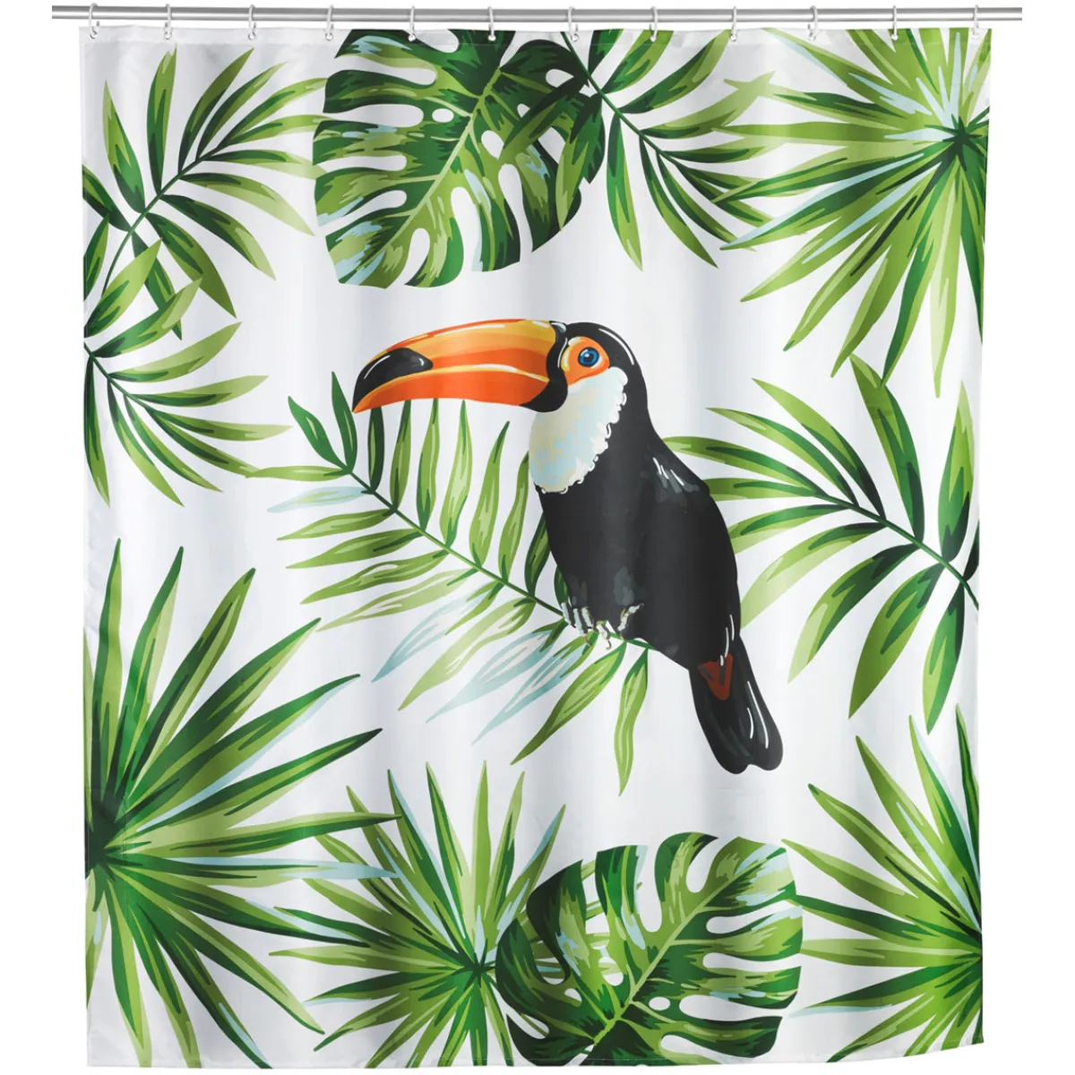 Mit dem Wenko Tucan Duschvorhang holen Sie sich ein Stück tropisches Flair in Ihr Badezimmer. Die hochwertige Verarbeitung aus Textil-Polyester sorgt für Langlebigkeit und die bunten Motive bringen Freude in den Alltag. Bestellen Sie jetzt den waschbaren Vorhang inklusive praktischer Ringe bequem online bei !