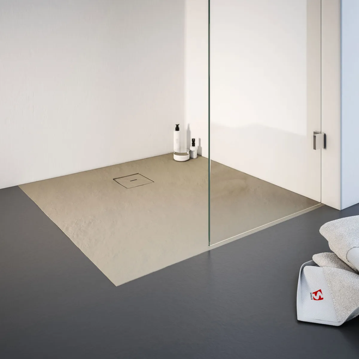 Schulte Eck-Duschwanne Mineralguss Quadrat 100×4 x 100 cm Steinstruktur sandfarben
