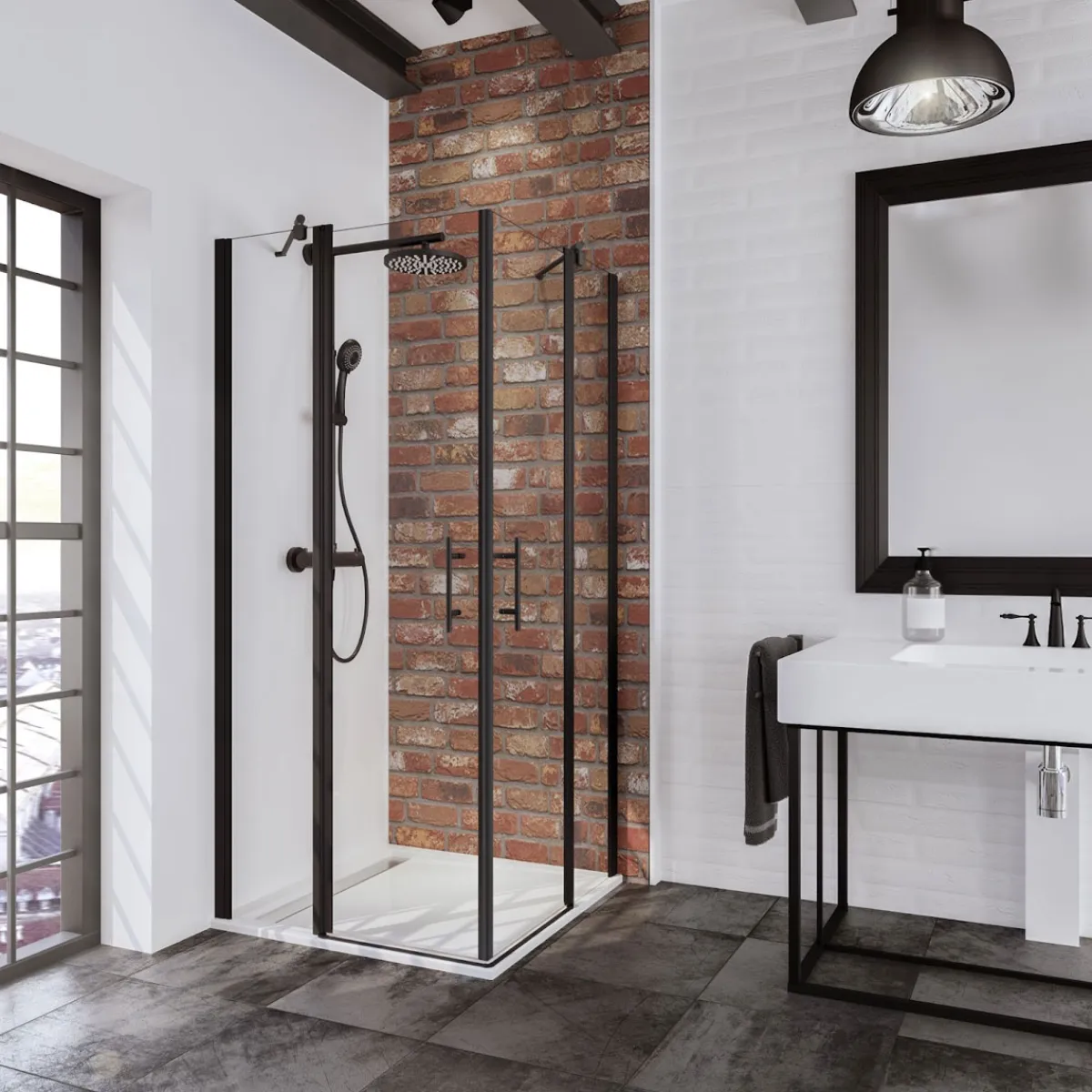 Eckeinstieg mit Drehtür BlackStyle mattschwarz BxH 90 x 192 cm*Schulte Best