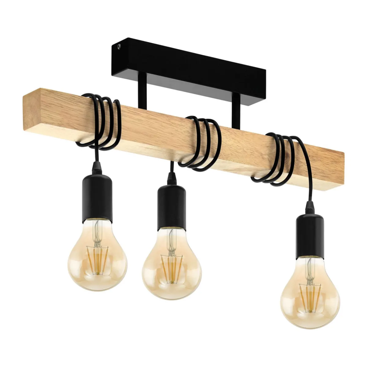 Die Eglo Deckenleuchte Townshend verbindet rustikales Design mit moderner Technologie und schafft so eine einzigartige Atmosphäre in Ihrem Wohnzimmer oder Flur. Das Leuchtengehäuse aus Holz und Stahl in Braun und Schwarz verleiht der Leuchte einen natürlichen Charme, während die drei E27 Lampenfassungen für ausreichend Helligkeit sorgen.