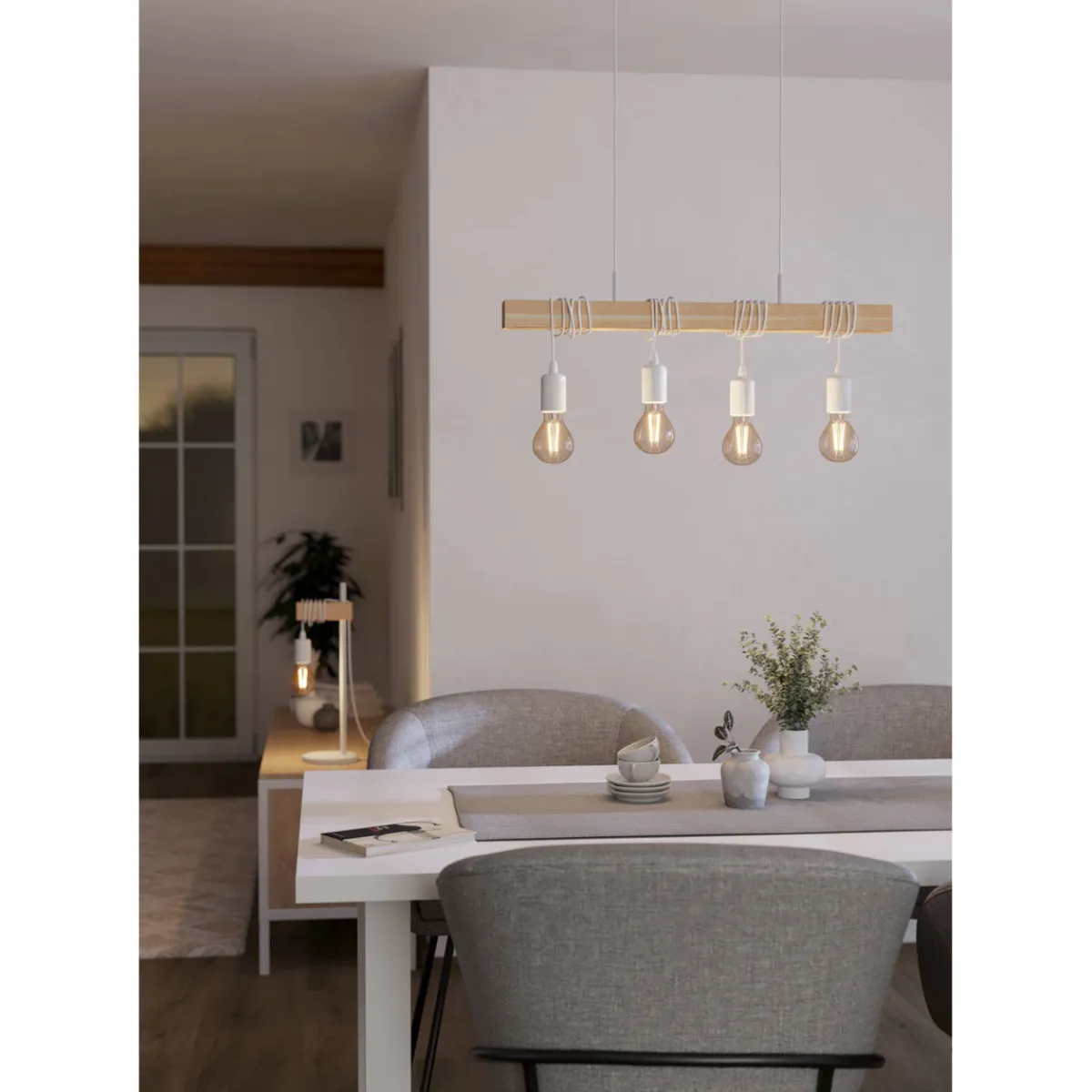 Die Eglo Hängeleuchte Townshend 4er weiß ist die perfekte Wahl für alle, die ihr Zuhause mit stilvollen und modernen Leuchten ausstatten möchten. Mit ihrem warmweißen Licht und dem Holzschirm sorgt sie für eine gemütliche Atmosphäre in jedem Raum.