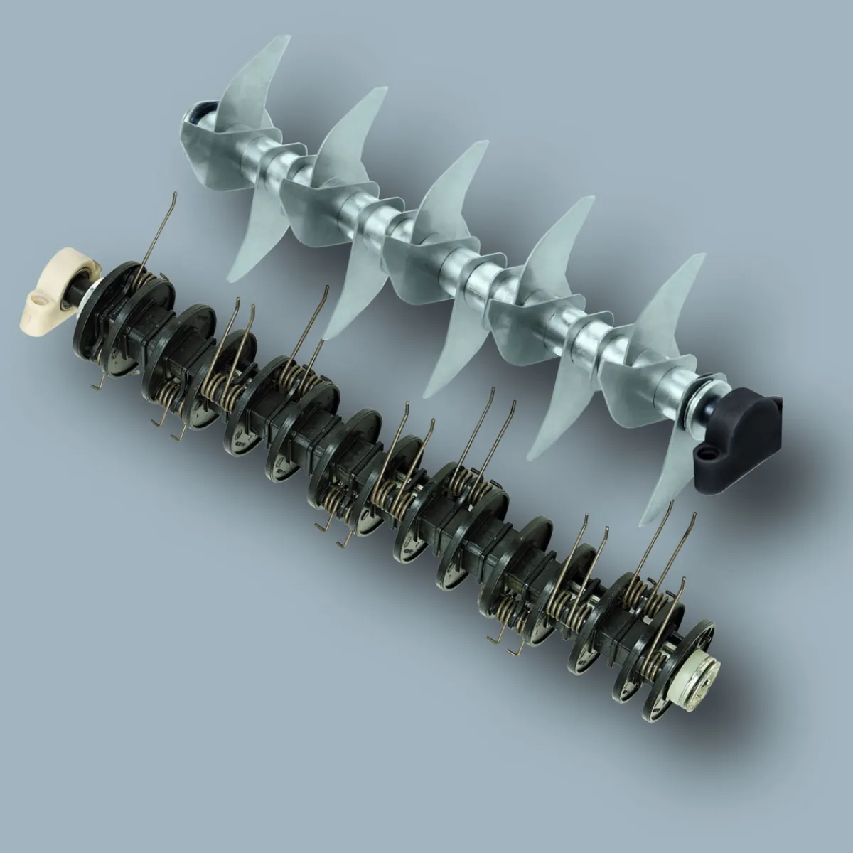 - – Kugelgelagerte Messerwalze mit 20 Edelstahlmessern für ein präzises Vertikutieren