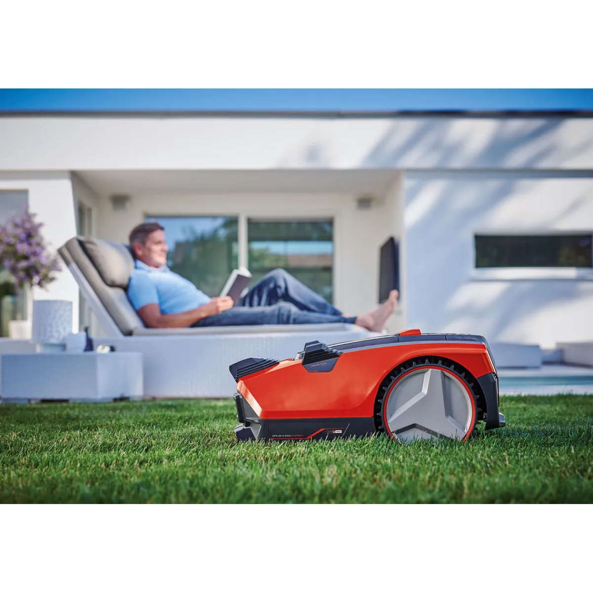 - Durch die Sensorik (Hebe-, Kipp-, Umkehr-, Hindernis- und Regensensor) wird eine sichere Nutzung gewährleistet.