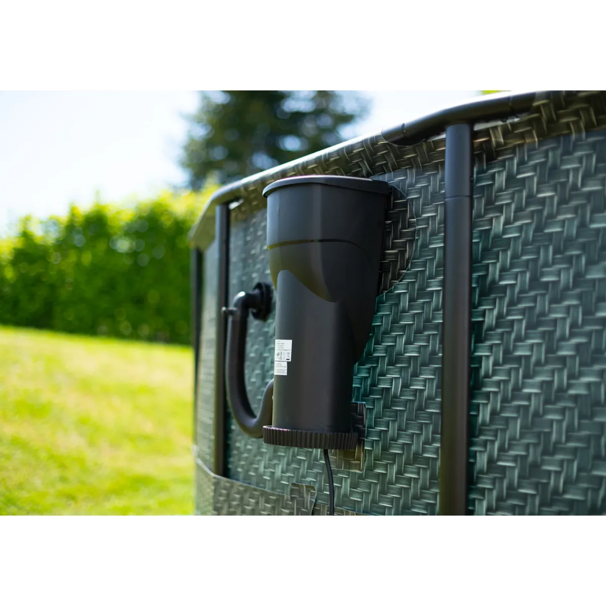 Summer Waves Elite Frame Pool Aufstellpool rund Komplettset Rattanoptik grau Ø 549×132 cm Abkühlung, Erfrischung und Poolspaß ohne Ende — klingt das nicht hervorragend? Der Elite Frame Pool von Summer Waves punktet mit umfangreicher Ausstattung und zuverlässiger Qualität. Verwandele deinen Garten mit dem runden Aufstellpool und wenig Aufwand in ein abwechslungsreiches Poolparadies! Schneller Aufbau und Poolspaß pur mit deinem Komplettset! Durch das innovative Snap-in System ist der Pool im Nu aufgebaut. Die hochwertigen Rahmenrohre aus Metall gewährleisten in Verbindung mit der strapazierfähigen Poolfolie aus einem 3-lagigen PVC-Polyester-Mix eine hohe Widerstandsfähigkeit und Stabilität. Die Highlights auf einen Blick: * Komplettset mit exklusivem Zubehör! * Robuste Poolkonstruktion für langanhaltenden Badespaß * Maximale Stabilität durch massive Stahlrohr-Konstruktion * Hohe Belastbarkeit dank 3-lagiger PVC-Polyester-Mix Folie * Schneller und einfacher Aufbau durch Snap-in Verfahren * Füllmenge bei 90 %: 27.406 Liter Platz für ca. 8 Personen * Zeitloses Design in Rattanoptik kombiniert mit Mosaikmuster Maximale Sauberkeit dank zuverlässiger Technologie! Die mitgelieferte SkimmerPlus 2-in-1 Filterpumpe reinigt das Wasser effektiv und sorgt für klare Verhältnisse. Oberflächenablagerungen werden kontinuierlich durch die Abschöpftechnologie entfernt, sodass du den ganzen Sommer über kristallklares Wasser genießen kannst. Im Lieferumfang enthalten: * SkimmerPlus Filterpumpe mit Filterpatrone * Einstiegsleiter * Abdeckplane und Bodenvlies * Deluxe-Reinigungsset Erlebe maximalen Badespaß, Abkühlung pur und unvergessliche Sommermomente mit dem großen Summer Waves Elite Frame Pool!