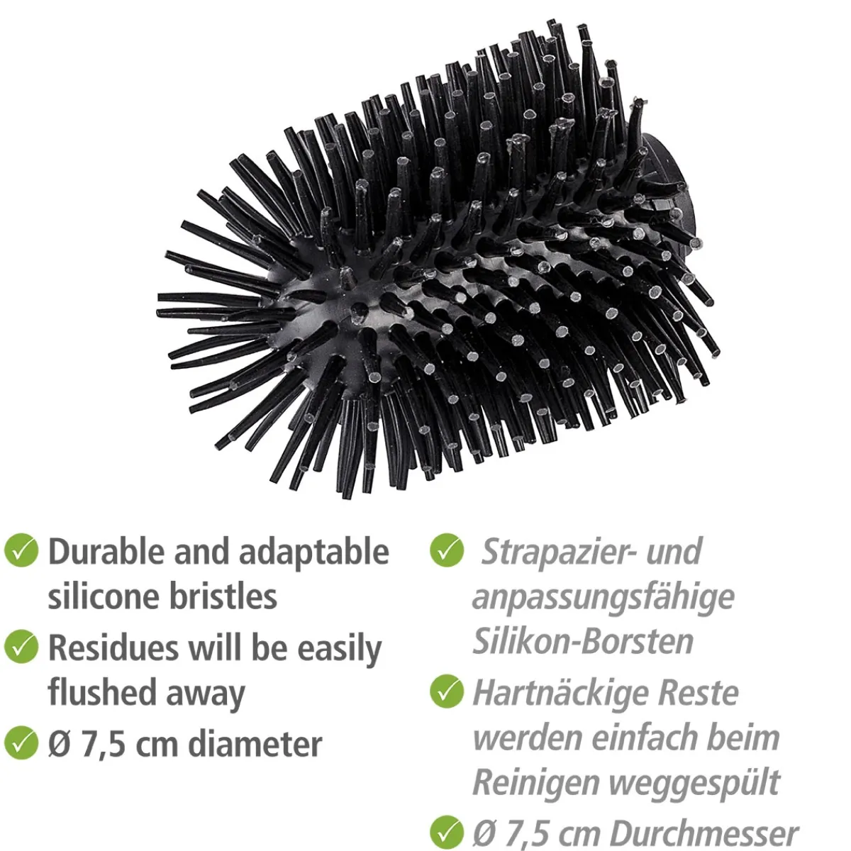 Mit dem Wenko Ersatzbürstenkopf wird das WC-Reinigen zum Kinderspiel. Dank des hochwertigen Silikons ist er besonders langlebig und lässt sich einfach reinigen. Die schwarze Farbe verleiht ihm ein modernes Design und passt perfekt in jedes Badezimmer. Mit einem Durchmesser von 7,5 cm passt er in alle handelsüblichen WC-Bürstengarnituren ohne Rohr. Überzeugen Sie sich selbst von der Qualität des Wenko Ersatzbürstenkopfs!
