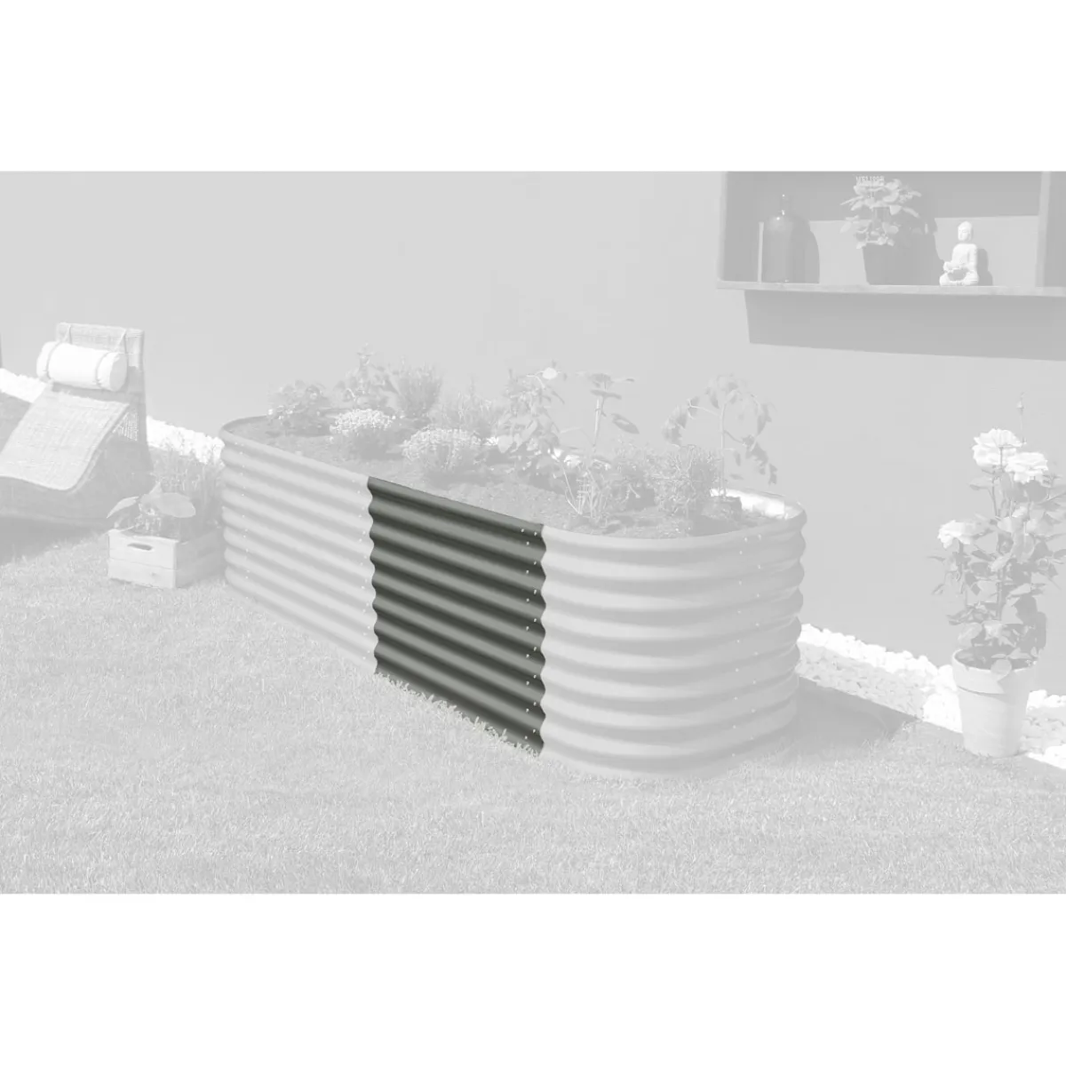 Mit der Vitavia Erweiterung stretched 630 granit erweitern Sie Ihr Hochbeet um eine zusätzliche Nutzfläche von 1,33 m². Das ovale Design und die Granitfarbe fügen sich perfekt in Ihren Garten ein und bieten Platz für weitere Pflanzen und Anzucht. Die hochwertige Beschichtung aus Zincalume sorgt dafür, dass das Material witterungsbeständig ist und UV-beständig bleibt.
