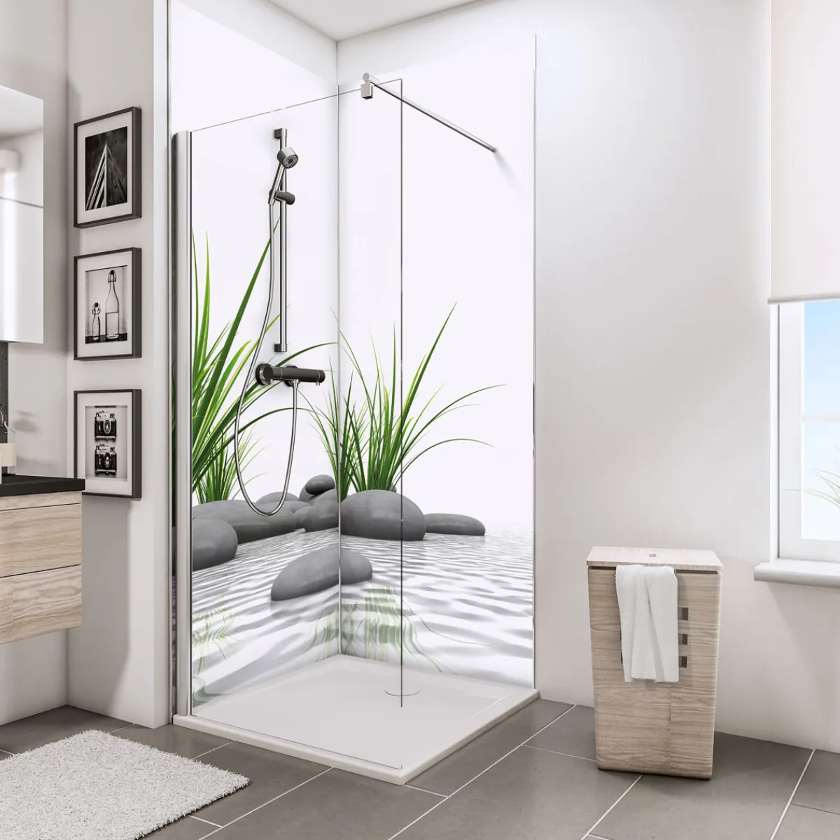 ExpressPlus Duschrueckwand DecoDesign Foto ue Eck Zen Steine u Gras 2100 x 900*Schulte New