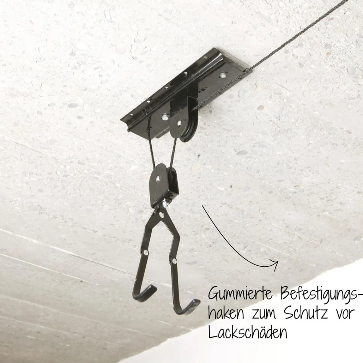 Der Fischer Bikes Fahrradlift Plus ist die perfekte Lösung für alle, die ihr Bike platzsparend aufbewahren möchten. Mit einer Tragkraft von bis zu 30 kg eignet er sich für alle gängigen Fahrräder und E-Bikes.