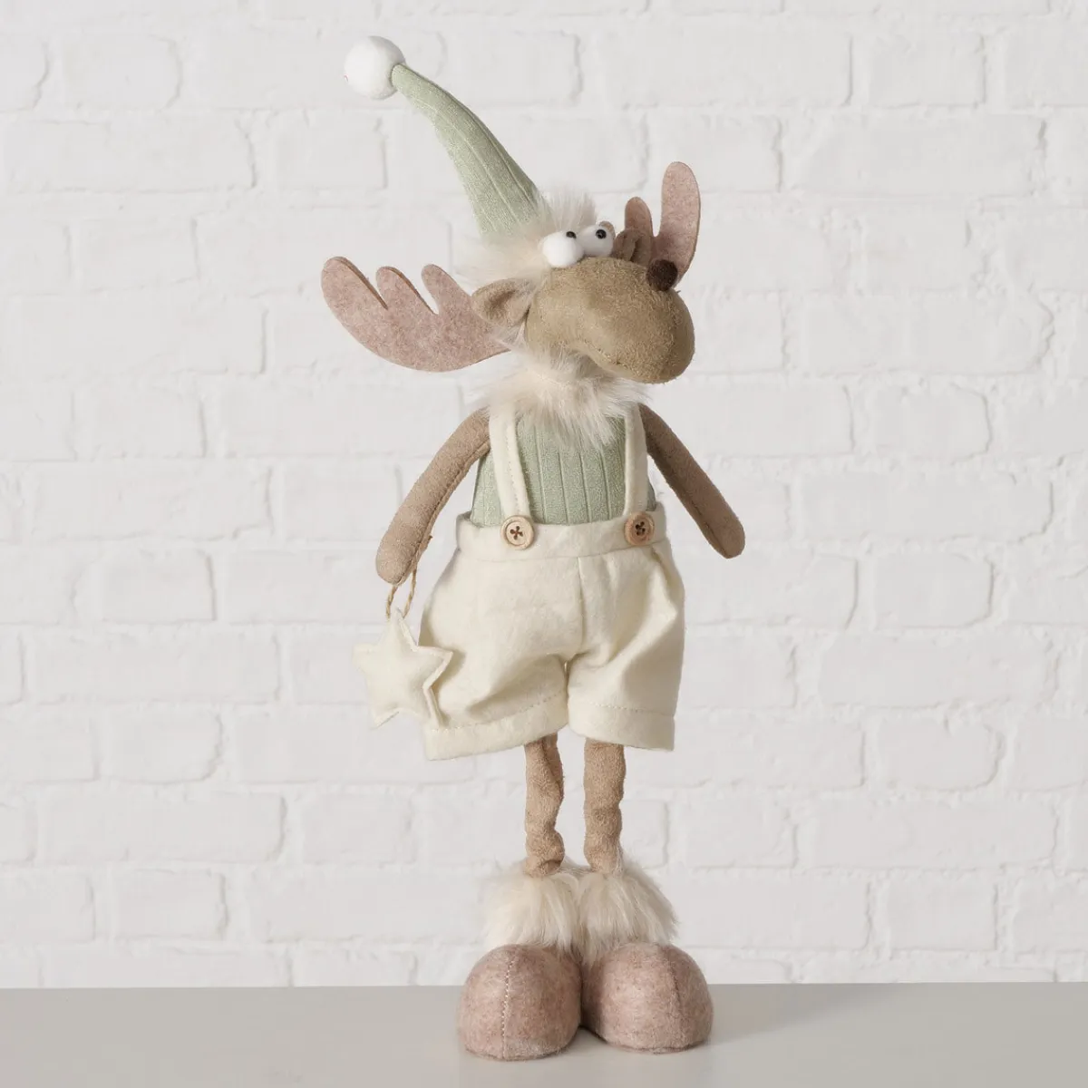 Lassen Sie sich von der Figur Bruny sortiert Elch in cremeweiß, braun und hellgrün verzaubern! Diese charmante Dekofigur bringt nicht nur winterliche Gemütlichkeit in Ihre vier Wände, sondern sorgt auch für ein Lächeln auf Ihrem Gesicht. Mit ihren liebevollen Details und dem kuscheligen Textil-Design ist sie ein echter Blickfang – ganz gleich, ob im Wohnzimmer, Flur oder Kinderzimmer. Die sanften Farben passen zu jedem Einrichtungsstil und setzen einen fröhlichen Akzent. Spüren Sie die besondere Atmosphäre, die diese Figur ausstrahlt: Der freundliche Elch lädt zum Träumen ein und macht jeden Raum sofort wohnlicher. Gerade in der dunklen Jahreszeit schenkt Ihnen diese Dekofigur Wärme und Geborgenheit. Überlegen Sie nicht lange – gönnen Sie sich dieses bezaubernde Highlight für Ihr Zuhause! Die Figur Bruny sortiert Elch ist mehr als nur eine Dekoration: Sie ist ein Stück Lebensfreude zum Anfassen.