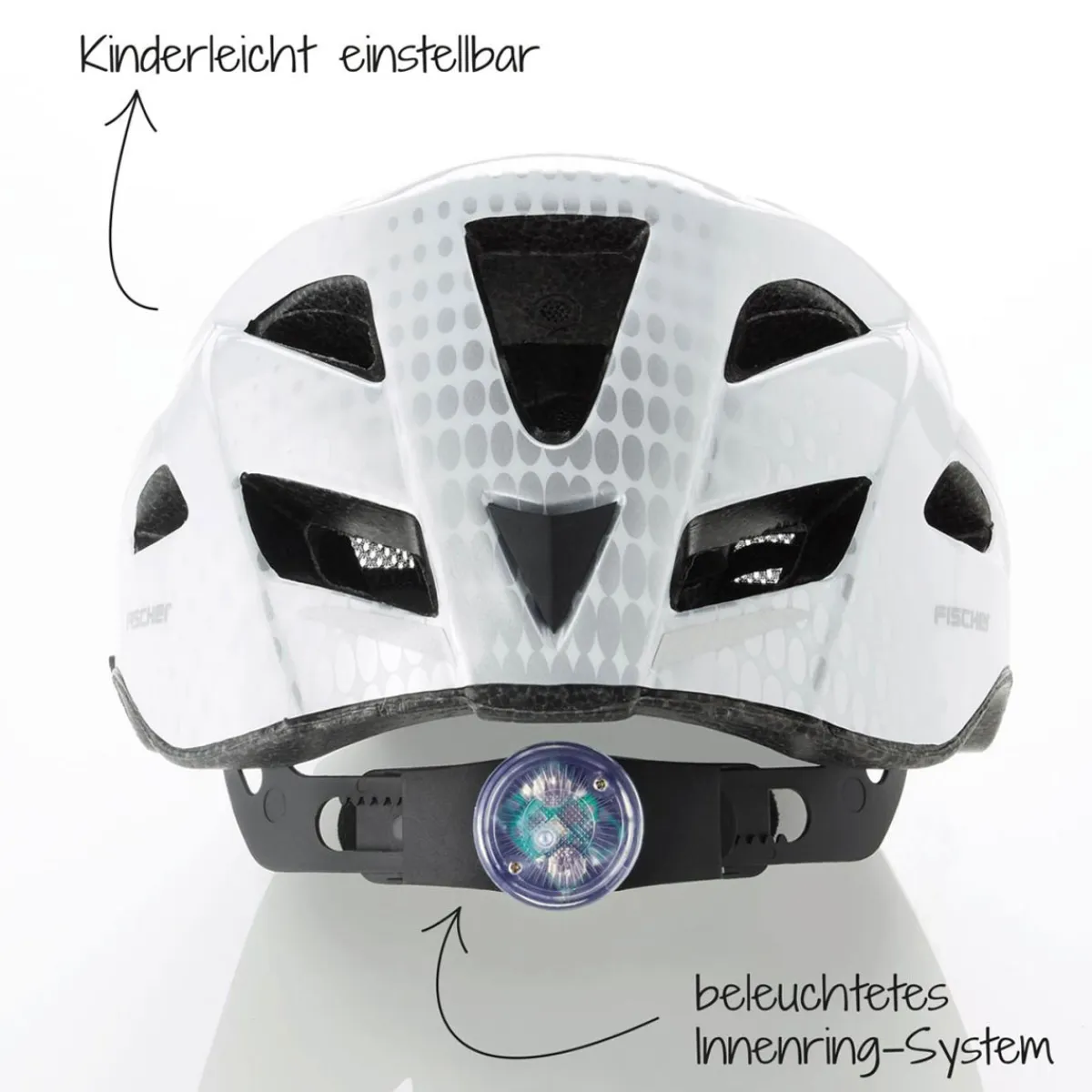Sicherheit und Komfort vereint: Der Fischer Bikes Fahrradhelm Urban Lano in Weiß ist der perfekte Begleiter für Kinder auf ihren Fahrradtouren. Mit einem Gewicht von nur 320 g und einer sehr guten Belüftung durch 20 große Lufteinlässe bietet er höchsten Tragekomfort. Das abnehmbare Visier, das beleuchtete Innenring-System sowie das Insektengitter sorgen für zusätzliche Sicherheit.