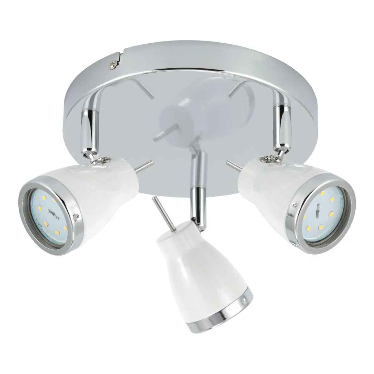 Die Flector Spotserie Retro White weiß-chrom GU10 ist wie gemacht für Kunden, die Wert auf stilvolles Design und flexible Funktionalität legen. Wenn Sie auf der Suche nach einer Beleuchtung sind, die nicht nur praktisch ist, sondern auch optisch überzeugt, dann ist diese Serie genau richtig! Dank ihrer drei verstellbaren Lichtquellen können Sie jeden Bereich Ihres Raumes optimal beleuchten – sei es zum Lesen im Wohnzimmer oder zur stimmungsvollen Ausleuchtung Ihrer Küche.Das edle Zusammenspiel von Weiß und Chrom fügt sich nahtlos in moderne Einrichtungsstile ein und verleiht Ihrem Zuhause einen Hauch von Eleganz. Die austauschbaren Leuchtmittel bieten Ihnen zudem maximale Freiheit bei der Auswahl Ihrer bevorzugten Lichtfarbe oder -intensität. Und das Beste: Die einfache Montage spart Zeit und Mühe! Mit dieser Spotserie entscheiden Sie sich nicht nur für eine Lampe, sondern auch dafür, Ihren Räumen Charakter zu verleihen.