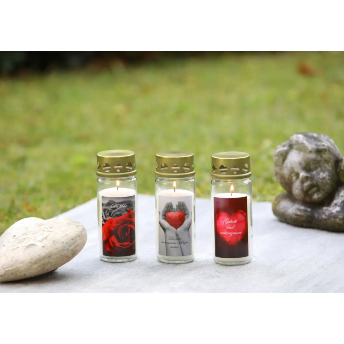 Flower Power Grabkerze GLORIA klein 6,3 x 16,5 cm Glas^ Outlet