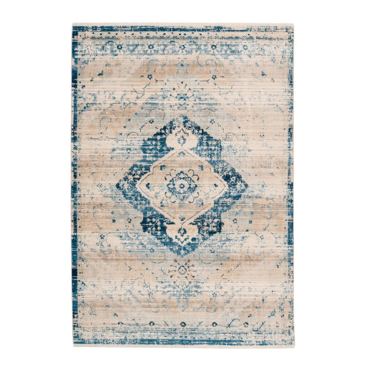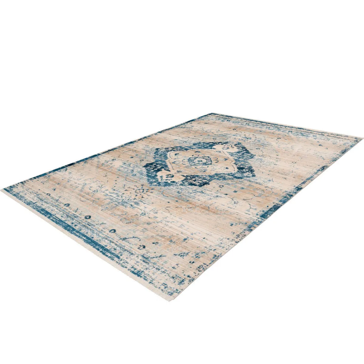Weicher Fransenteppich Das stilvolle Design in Vintage-Optik überzeugt mit seinen charakteristischen verwaschenen Elementen und den orientalisch anmutenden Musterungen. Dank des dichten Flors und der weichen Fransen an den Enden des Teppichs, vermittelt das Modell ein gemütliches Ambiente im ganzen Raum und schafft eine absolute Wohlfühlatmosphäre. Verstärken Sie Ihre Vintage-Möbel oder Einrichtung im Retro-Stil mit diesem stilechten Teppich oder integrieren Sie ihn in beliebige andere Wohnstile – der Teppich im Vintage-Stil ist vielseitig einsetzbar. Er ist seitlich gekettelt, was für einen schönen Abschluss des Flors sorgt und gleichzeitig verhindert, dass die Fasern ausfransen. Zudem ergibt sich dadurch ein optisch stimmiges Gesamtbild, das durch die Fransen optimal ergänzt wird. Kreieren Sie sich einen Wohntraum in Ihrem Zuhause mit diesem gemütlichen Teppich. Der Flor ist nicht nur weich, sondern durch die kreuzgewebte Herstellungsart und das Material pflegeleicht. So ist er auch in häufig genutzten Räumen, wie dem Esszimmer oder dem Flur optimal nutzbar. Räume mit Fußbodenheizung sind für dieses Teppichmodell ebenfalls kein Problem. Ein Baumwollrücken verstärkt den Flor des Teppichs zusätzlich.