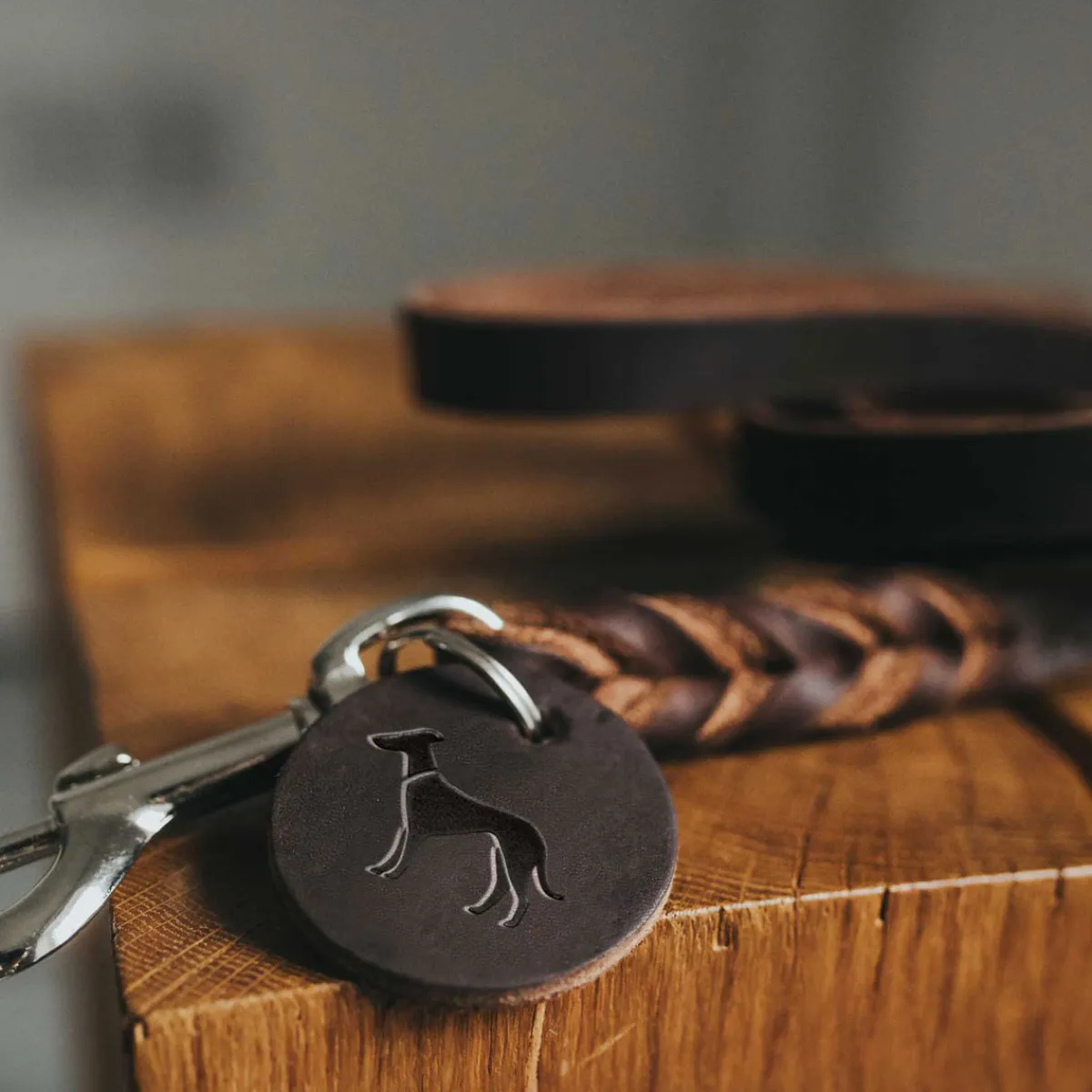 - Dunkelbraune Führleine aus hochwertigem Rindsleder