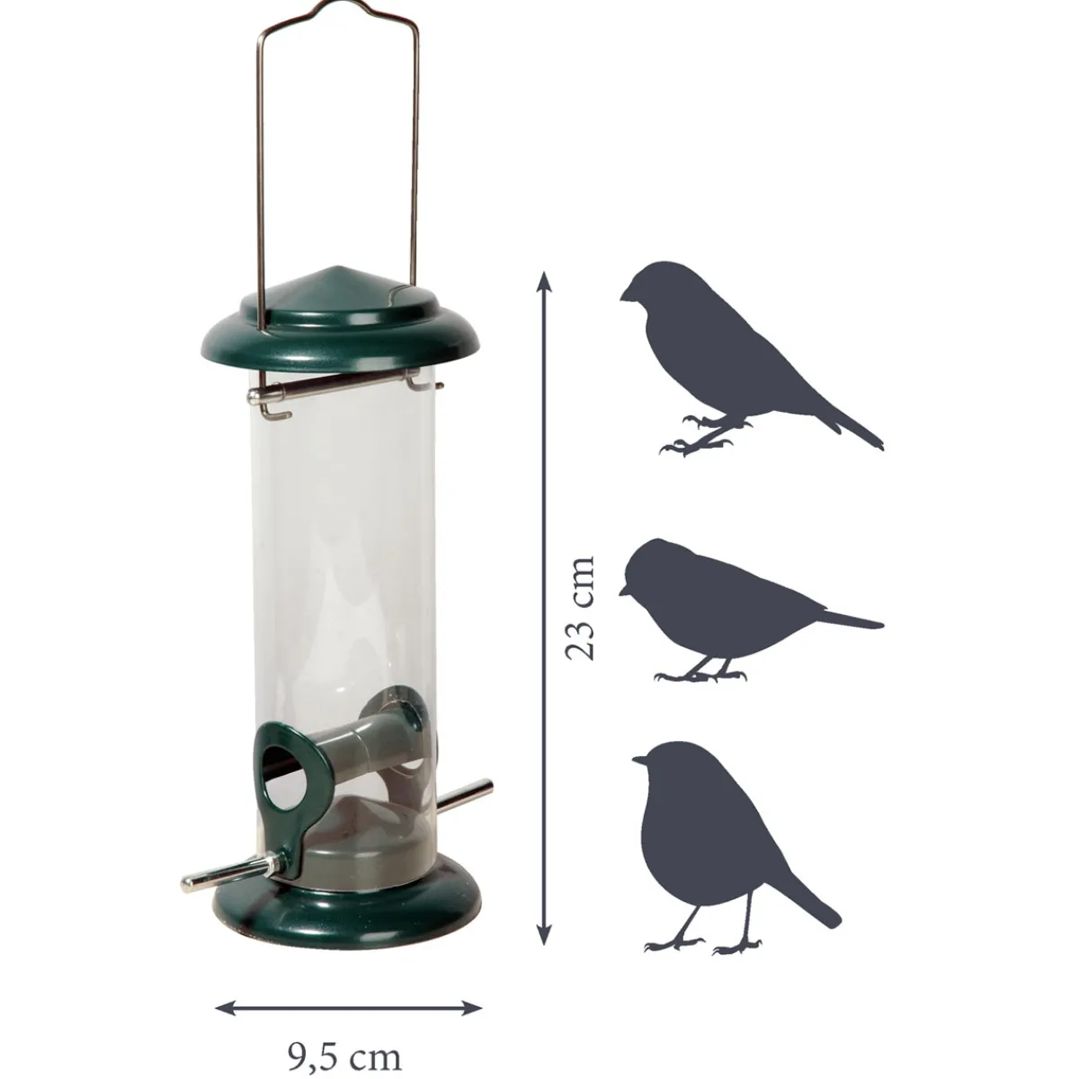 Mit dem Futterspender von DOBAR können Sie Ihren Garten, Balkon oder Terrasse in eine Vogel-Oase verwandeln. Der klassische Stil des dunkelgrünen Metalls fügt sich nahtlos in Ihre Außenanlage ein und bietet gleichzeitig eine praktische Möglichkeit, Wildvögel zu füttern.