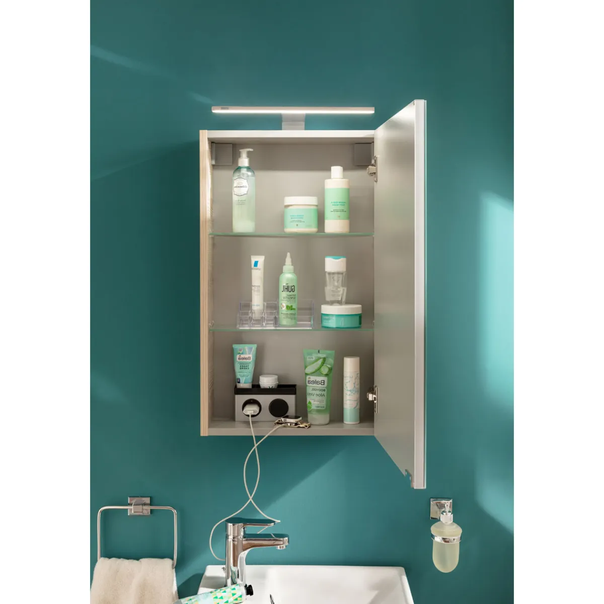 Mit dem Fackelmann Gäste-WC Spiegelschrank erhalten Sie ein hochwertiges Möbelstück mit einer modernen Optik und einer funktionalen Ausstattung. Der Schrank bietet ausreichend Platz zur Aufbewahrung Ihrer Kosmetika und Medikamente sowie eine integrierte Beleuchtung mit einem energiesparendem LED-Licht. Dank seiner vormontierten Bauweise lässt sich der Schrank schnell und einfach aufhängen. Eine klare Kaufempfehlung für jeden Kunden!