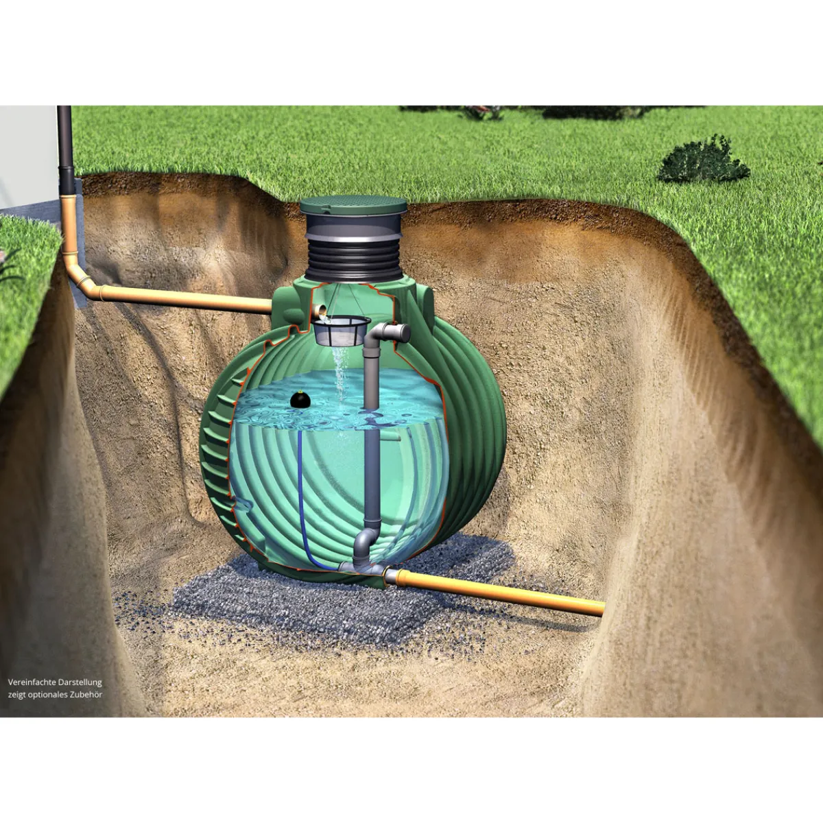 - Erdtank: Grundwasserstabil bis 80 cm über Tankboden