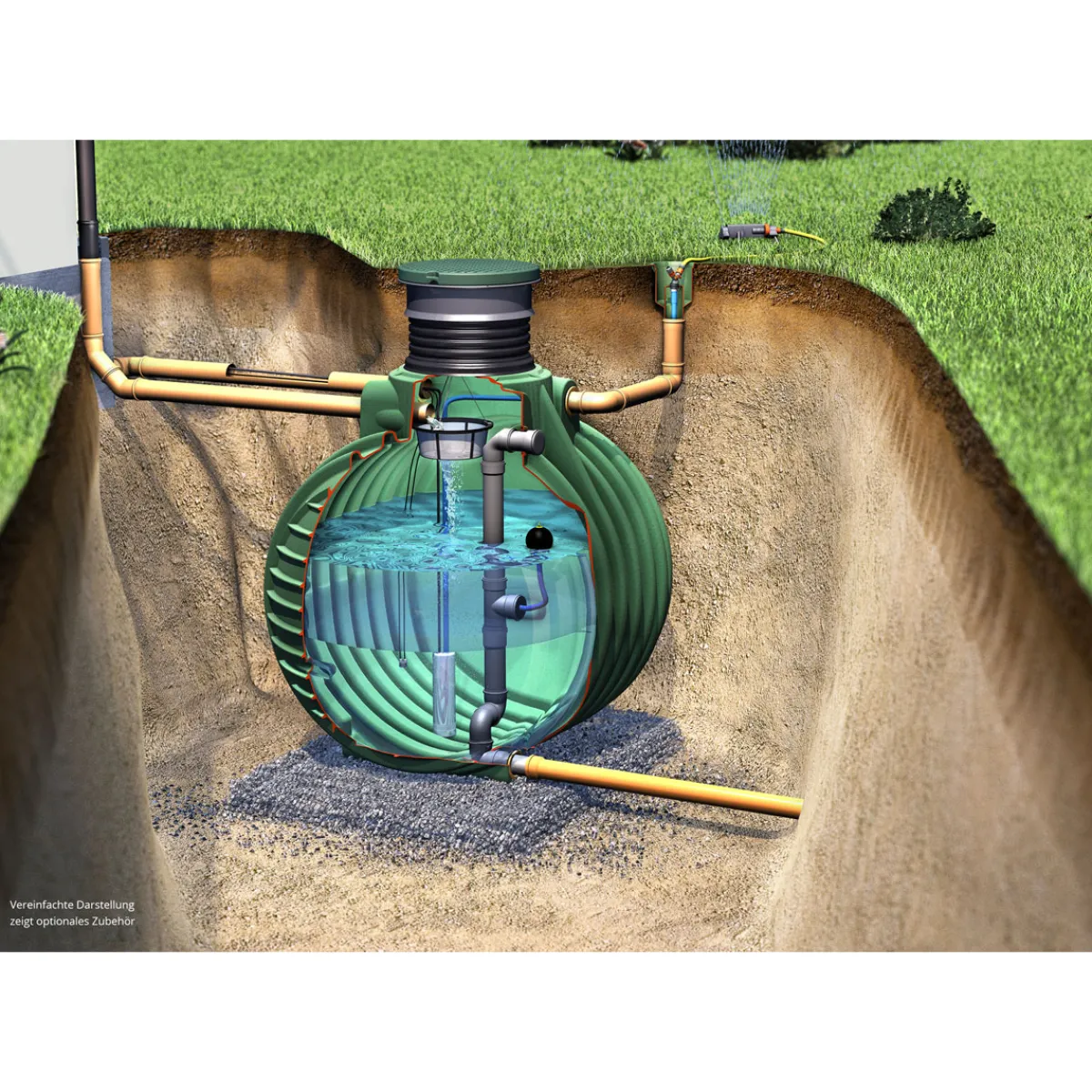 - Lieferumfang: Erdtank, Teleskop-Domschacht, Kunststoffabdeckung, Abflussdrossel, Ablaufgarnitur
