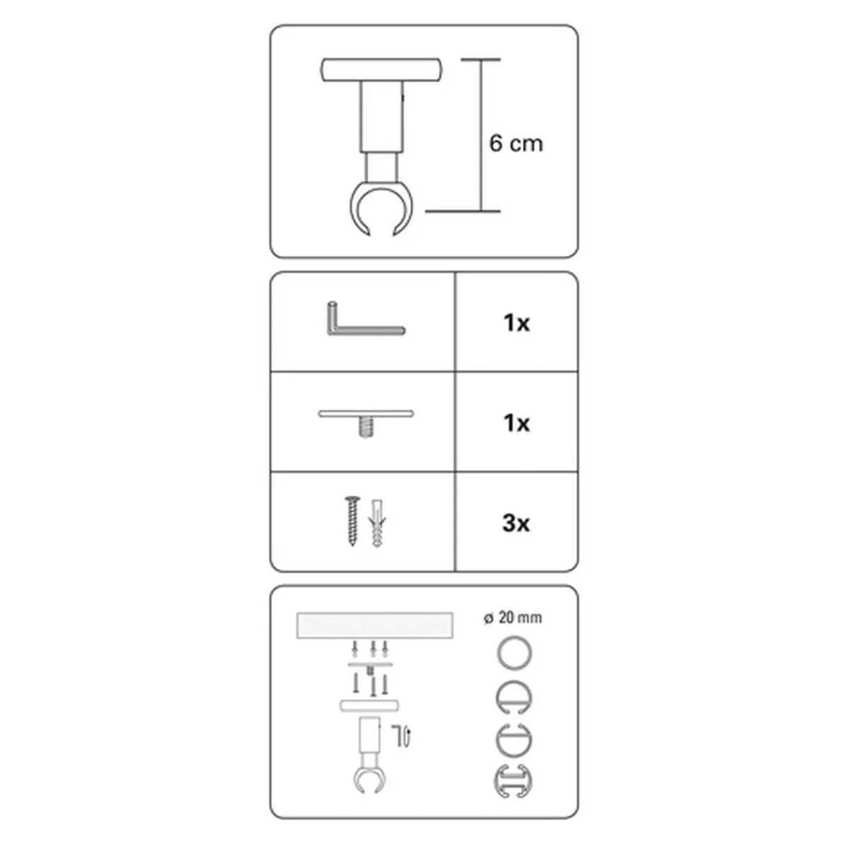 Gardinia Deckenträger Chicago für Durchmesser 20 mm 6 cm titan